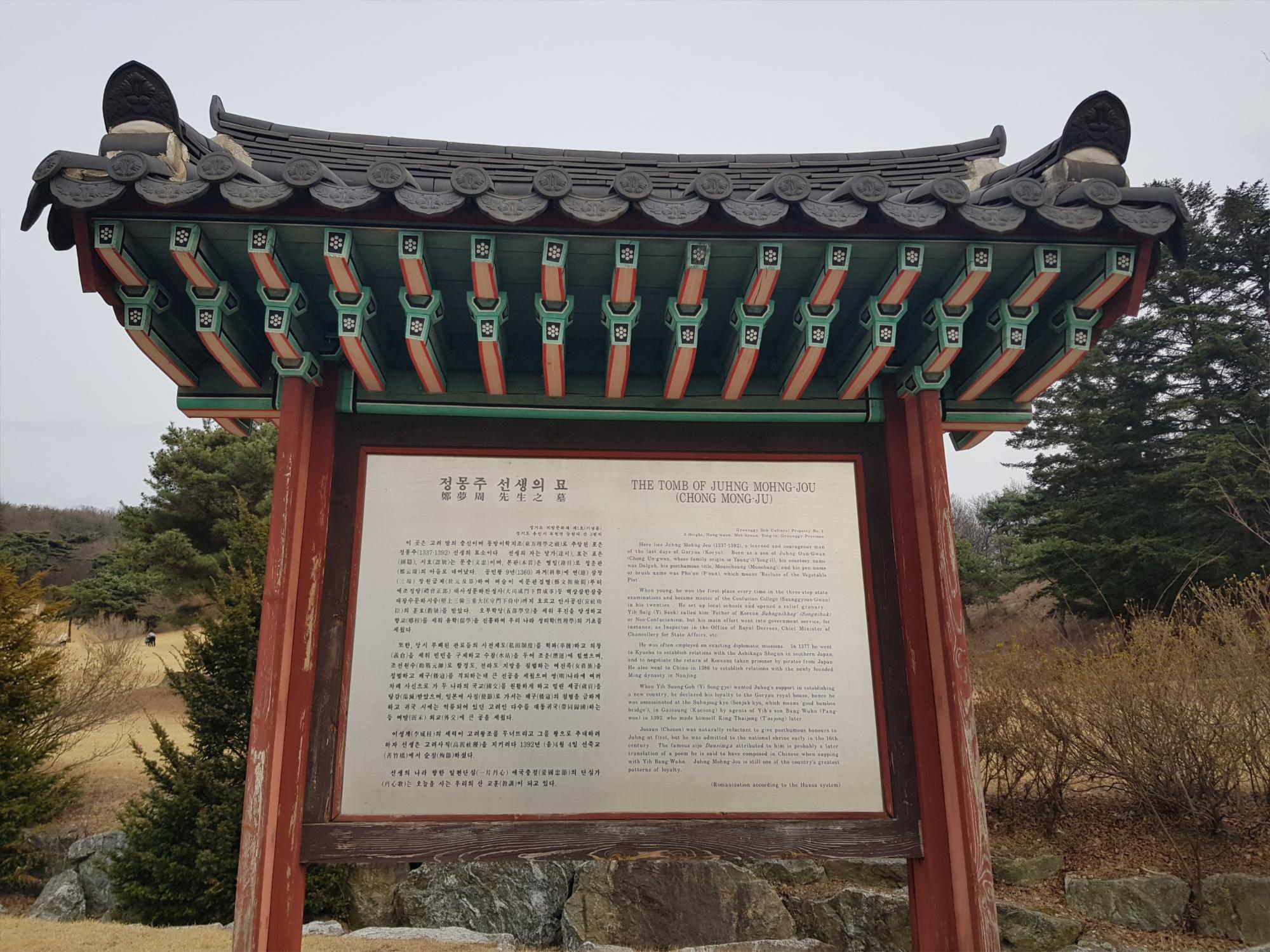 The area where Jeong Mong-ju's mausoleum is located is in Neungwon-ri. The ‘Neung’ means the tombs of kings and queens, and the ‘Won’ means the tombs of the royal family, such as the crown prince. There is a saying 'Seang-Geo Jincheon, Sa-Who Yongin'. It means that Jincheon, Chungcheongbuk - do is the best place to live, and Yongin, is the best area for after death. So, I think it is the reason we can see many graves of nobleman in Yongin area.
