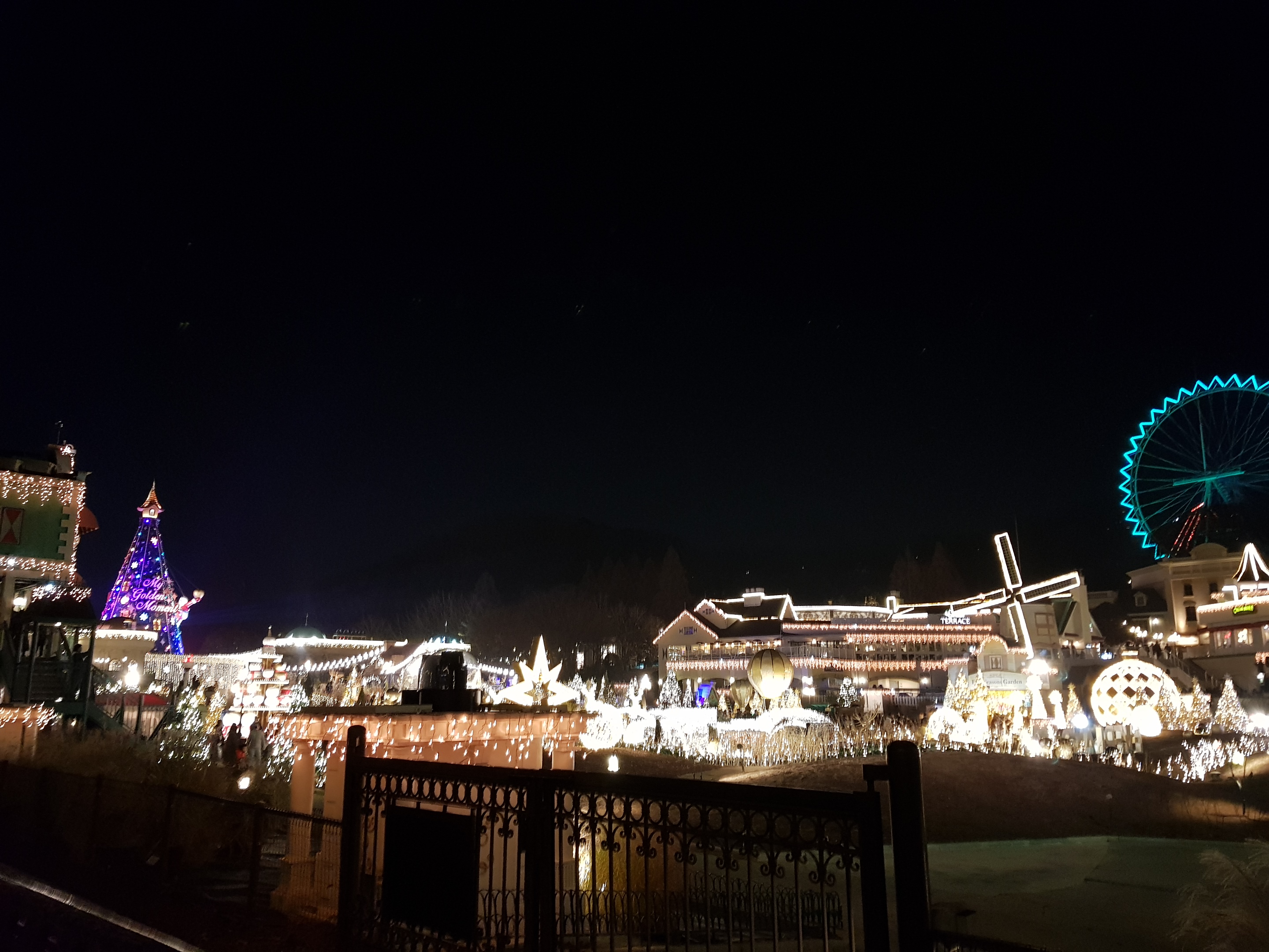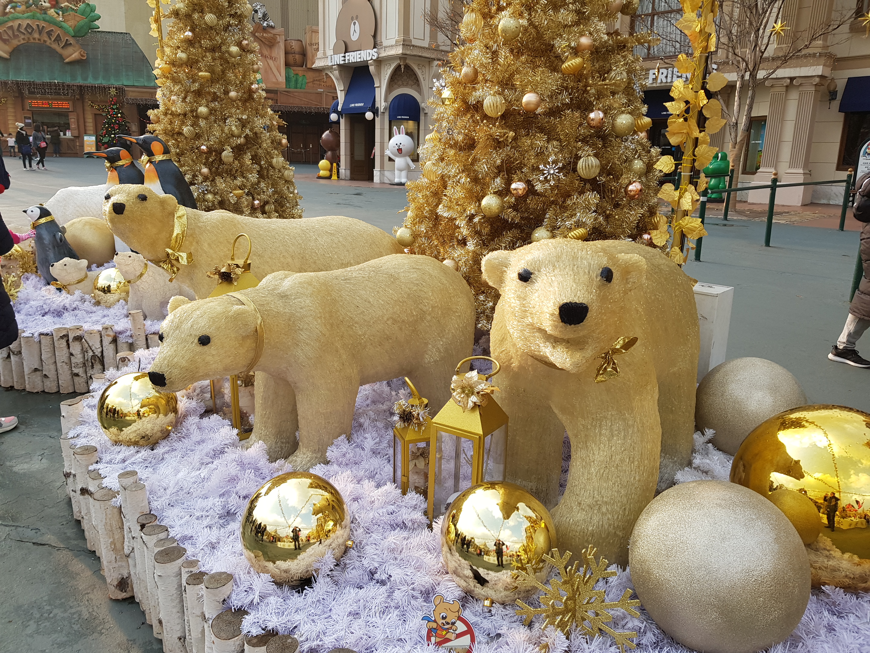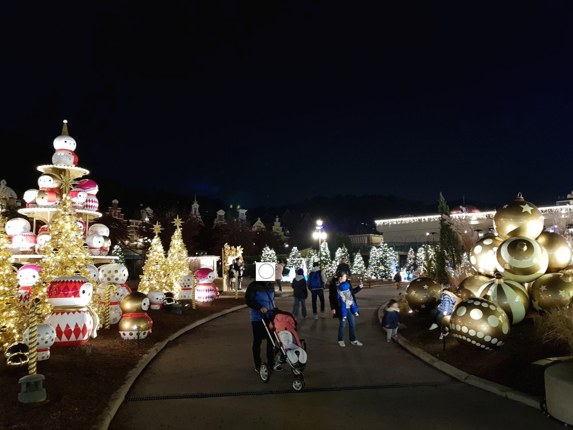 My favorite place is ‘European Village’. It is said that it reproduces real European village, I don’t know how realistic it is, but the scene where the garden and the light are mixed at night is really splendid and wonderful. Because it is a Christmas fantasy season, everywhere is full of gold color.