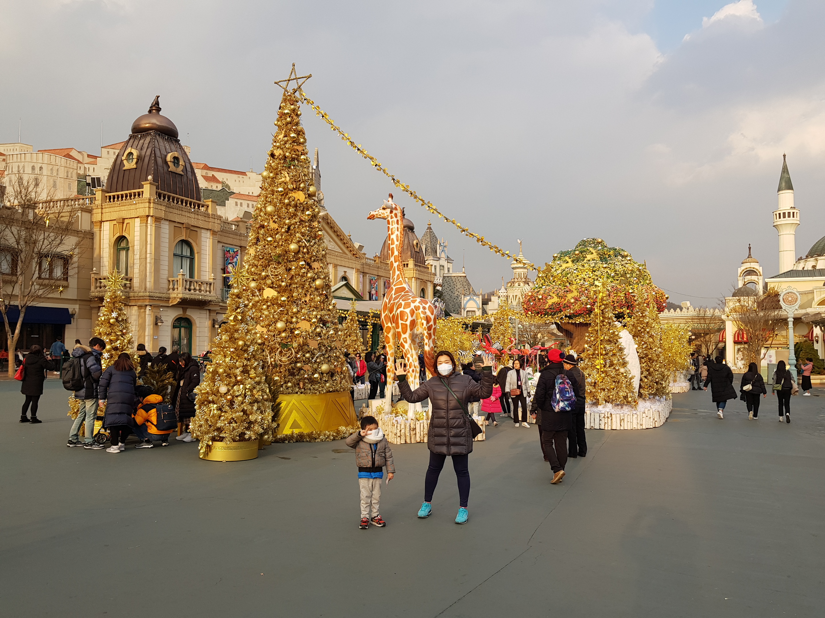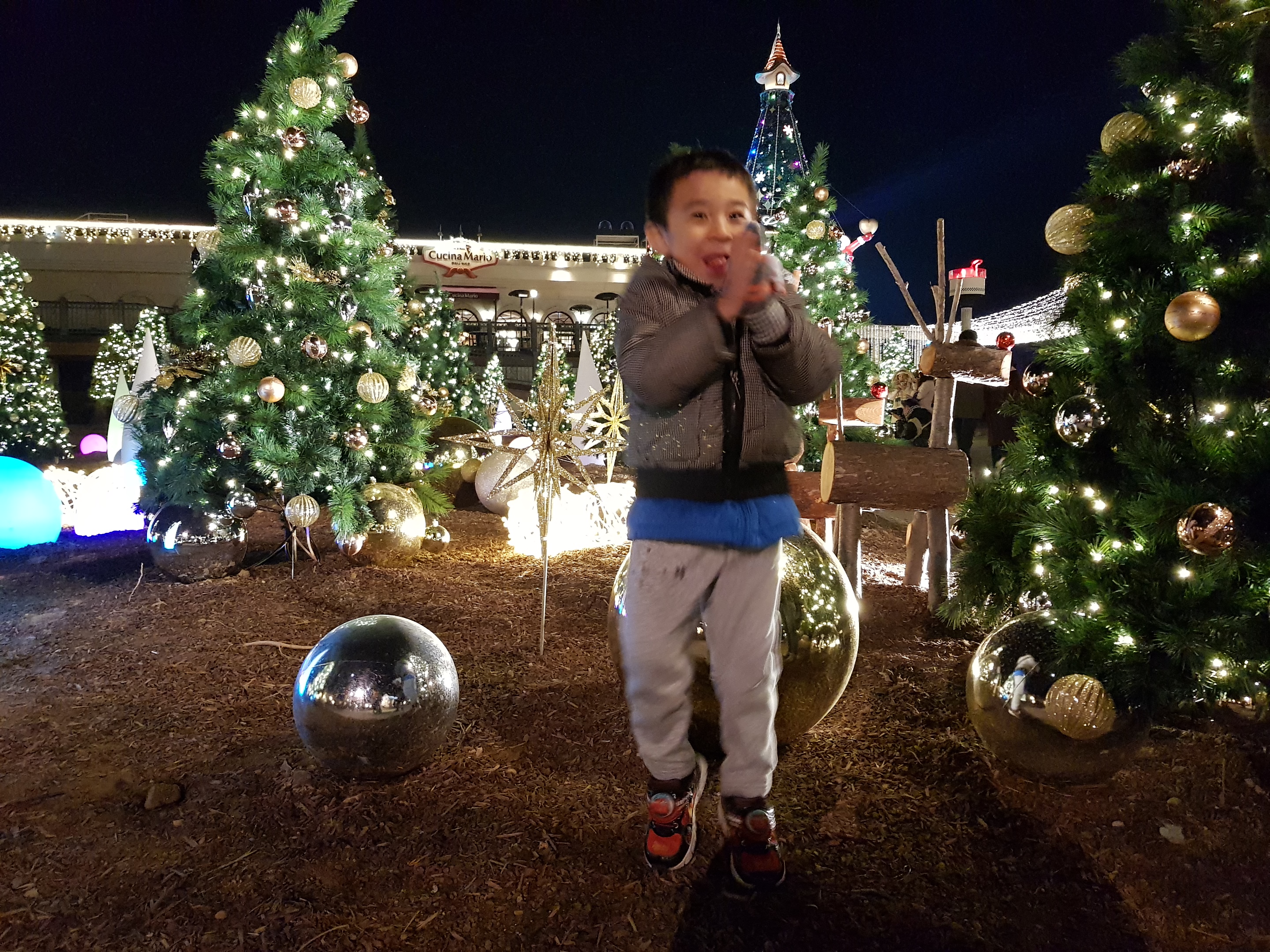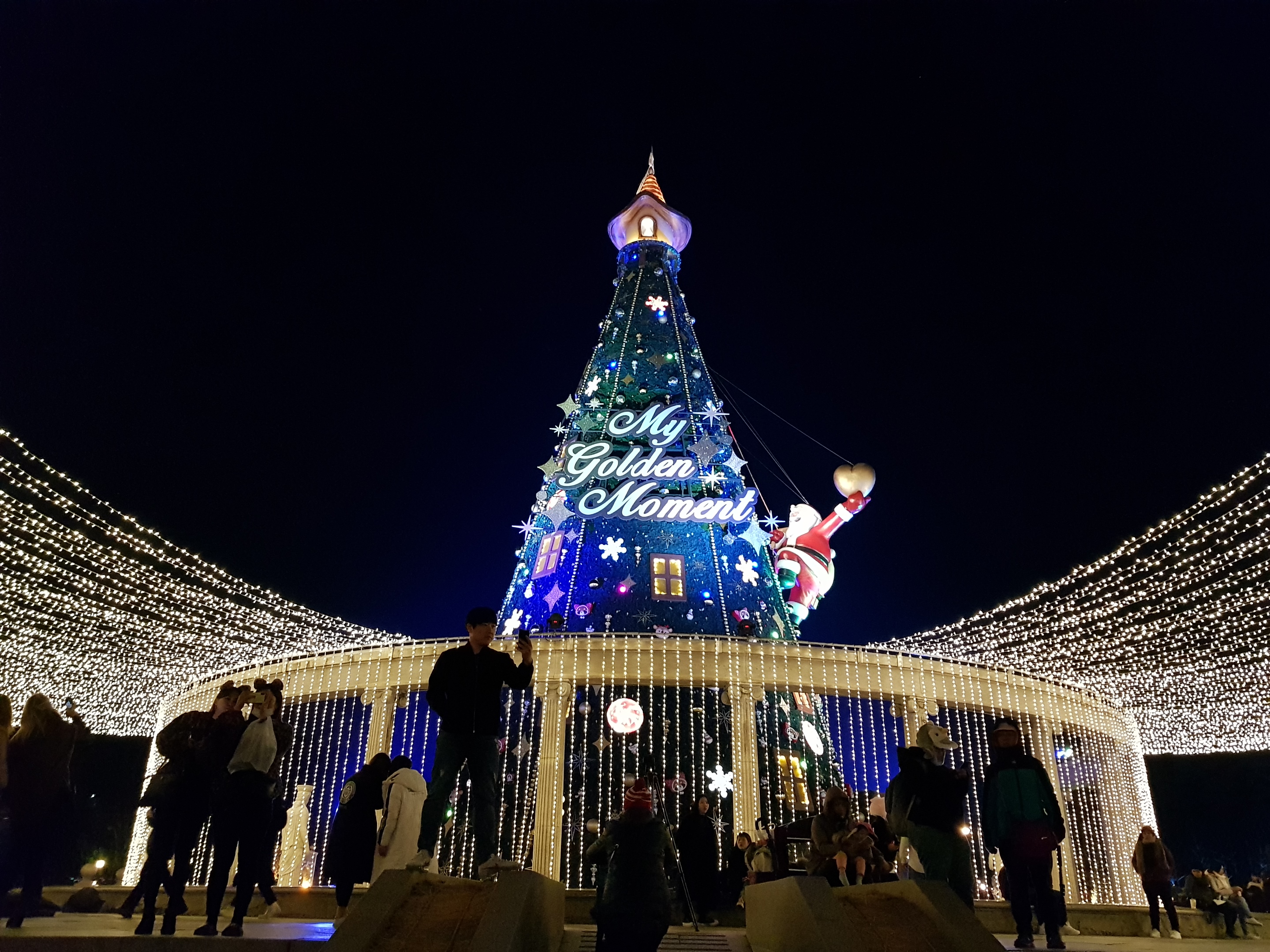 My favorite place is ‘European Village’. It is said that it reproduces real European village, I don’t know how realistic it is, but the scene where the garden and the light are mixed at night is really splendid and wonderful. Because it is a Christmas fantasy season, everywhere is full of gold color.