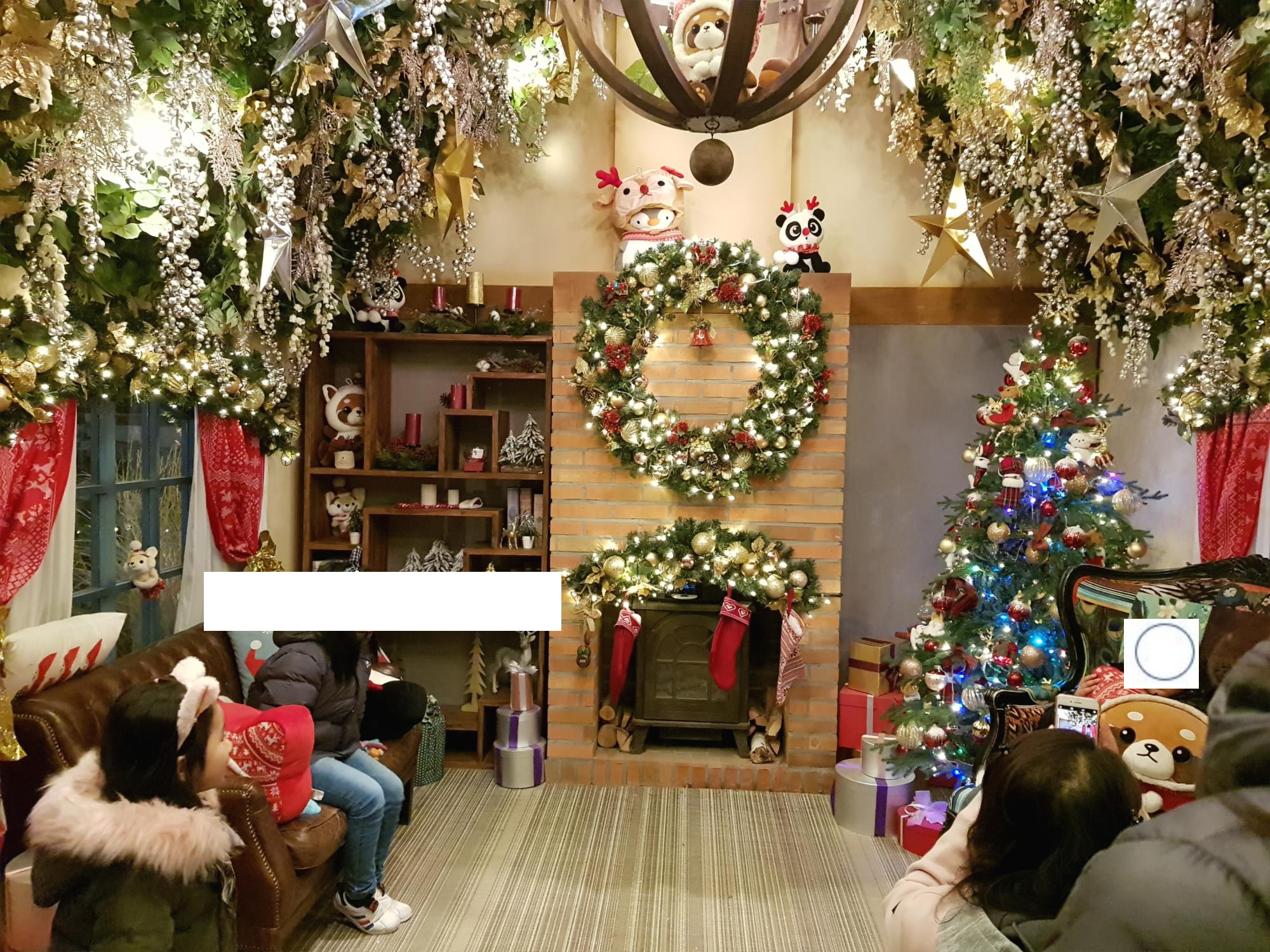 A space that reproduces the house living room decorated with Christmas decoration. I felt warm and cozy, and I could feel happiness just by being inside.
