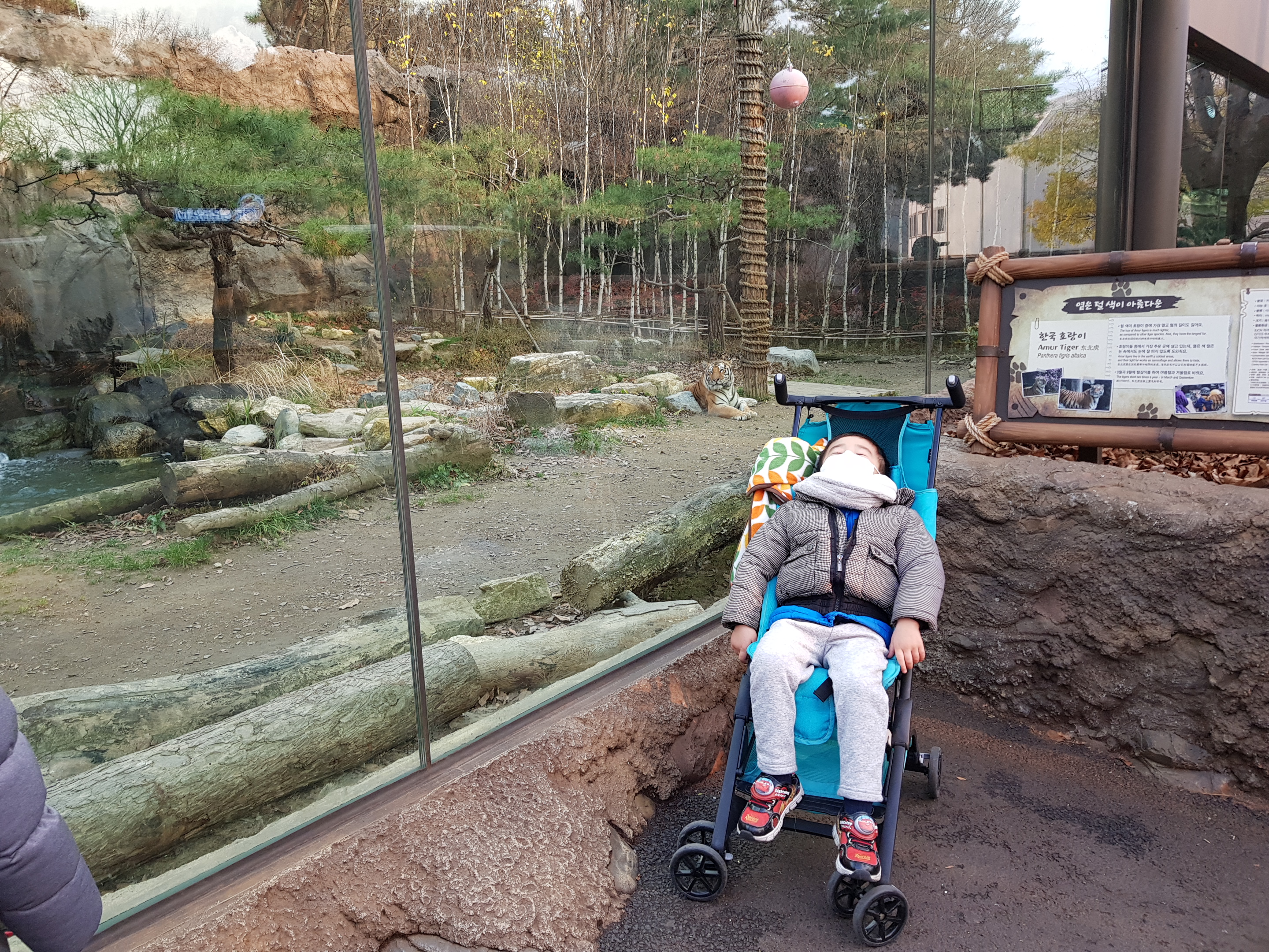 조금 더 내려가면 호랑이를 가까이서 볼 수 있는 장소도 있는데 최근 시설을 리모델링 한 듯 통유리창으로 벽을 만들어 놓아서 전보다 쾌적하게 관람할 수 있었다.