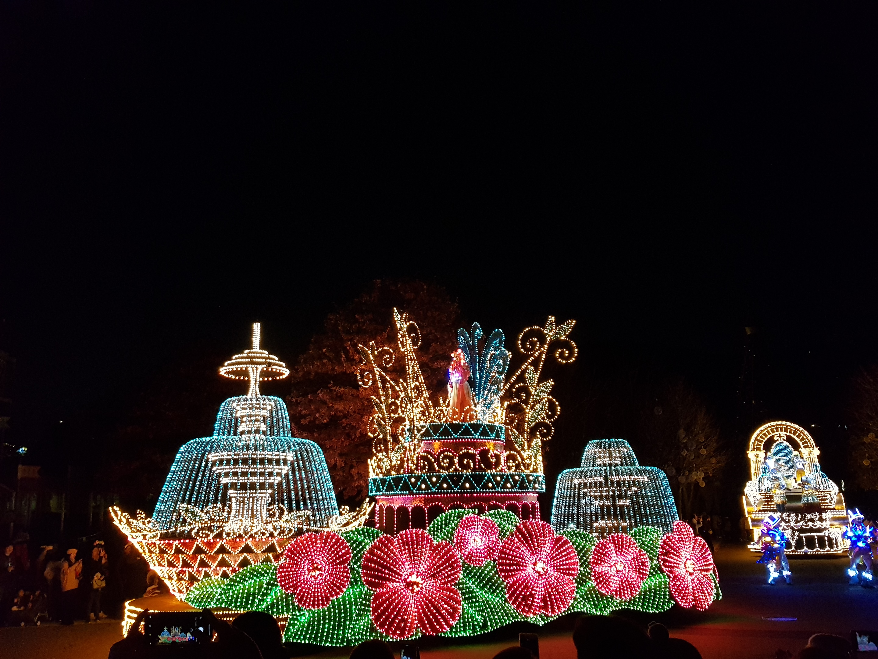 The parade, which can be called the flower of Everland night view, has begun. Several cars of the form shown below are marching in line, each decorated differently, and the dancers grab the attention of the audience with their spectacular costumes and wonderful dancing skills.