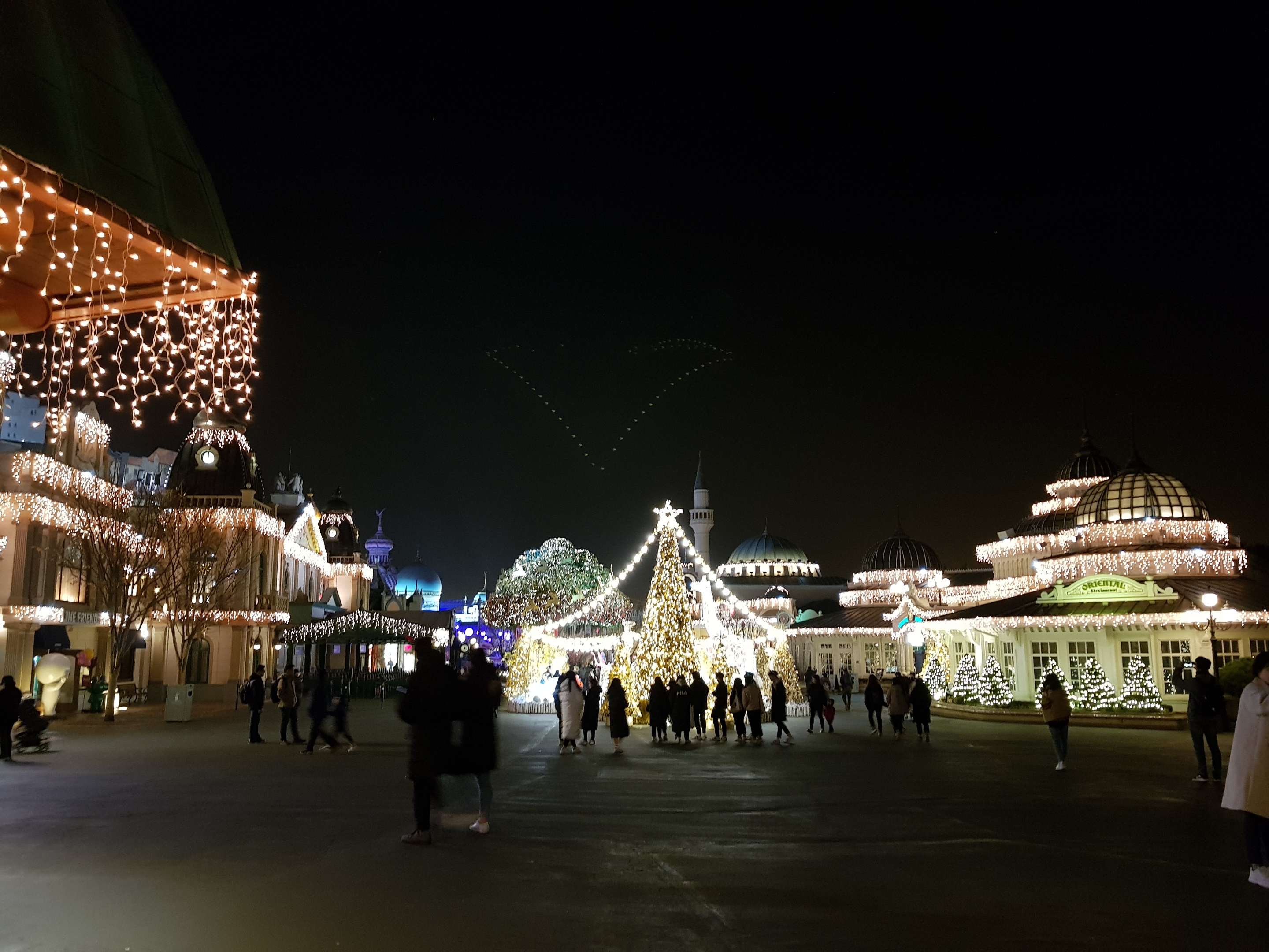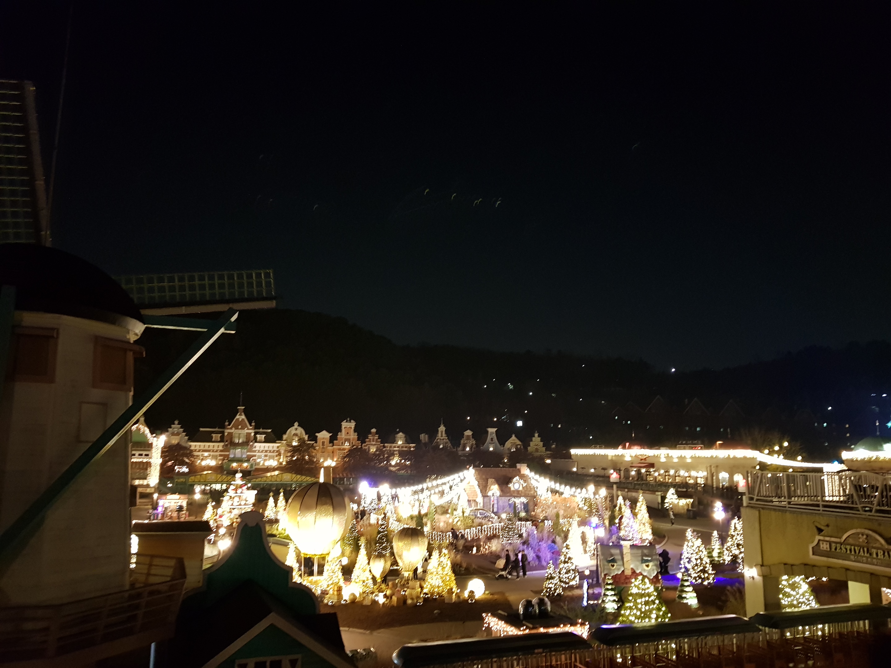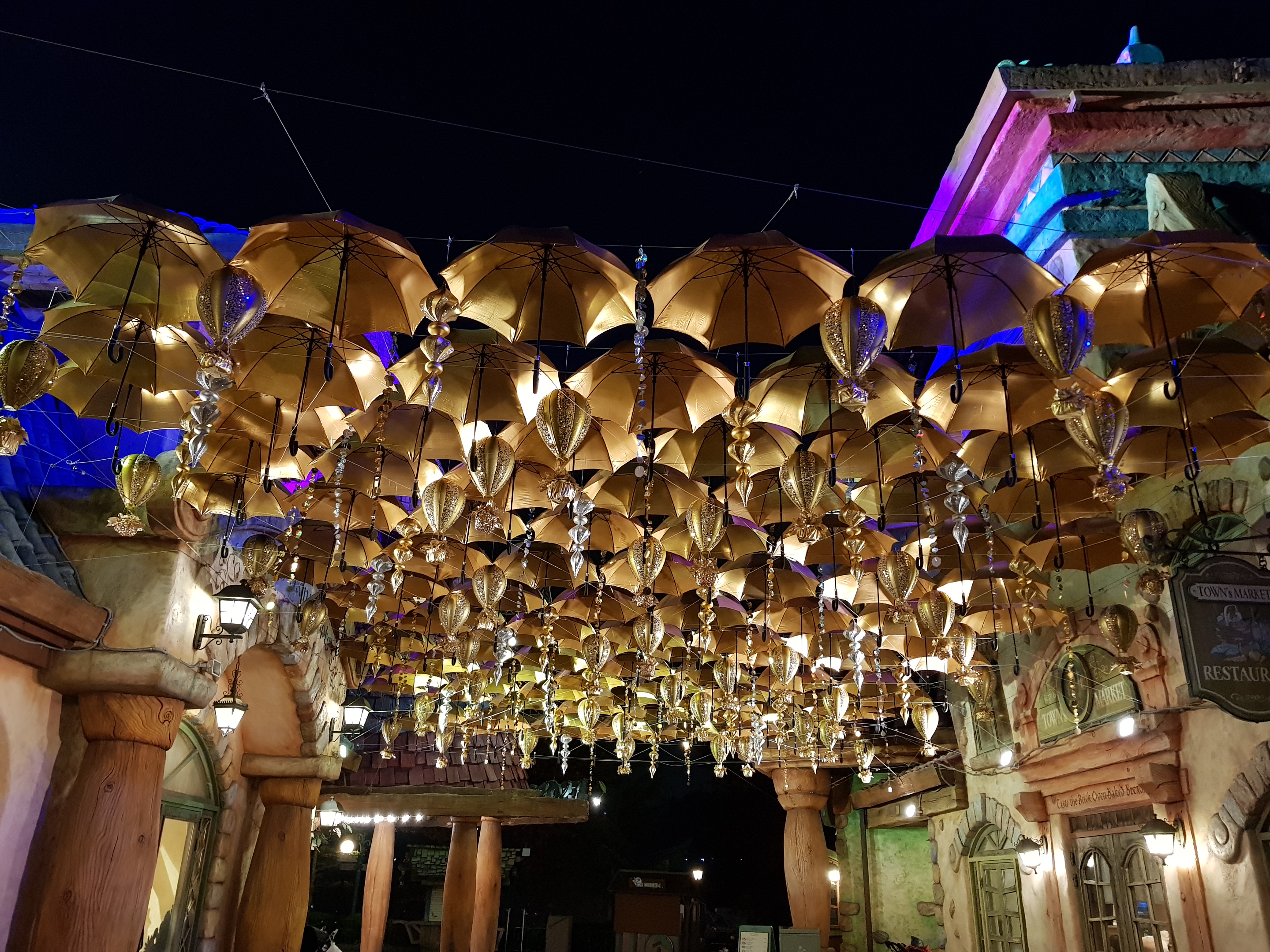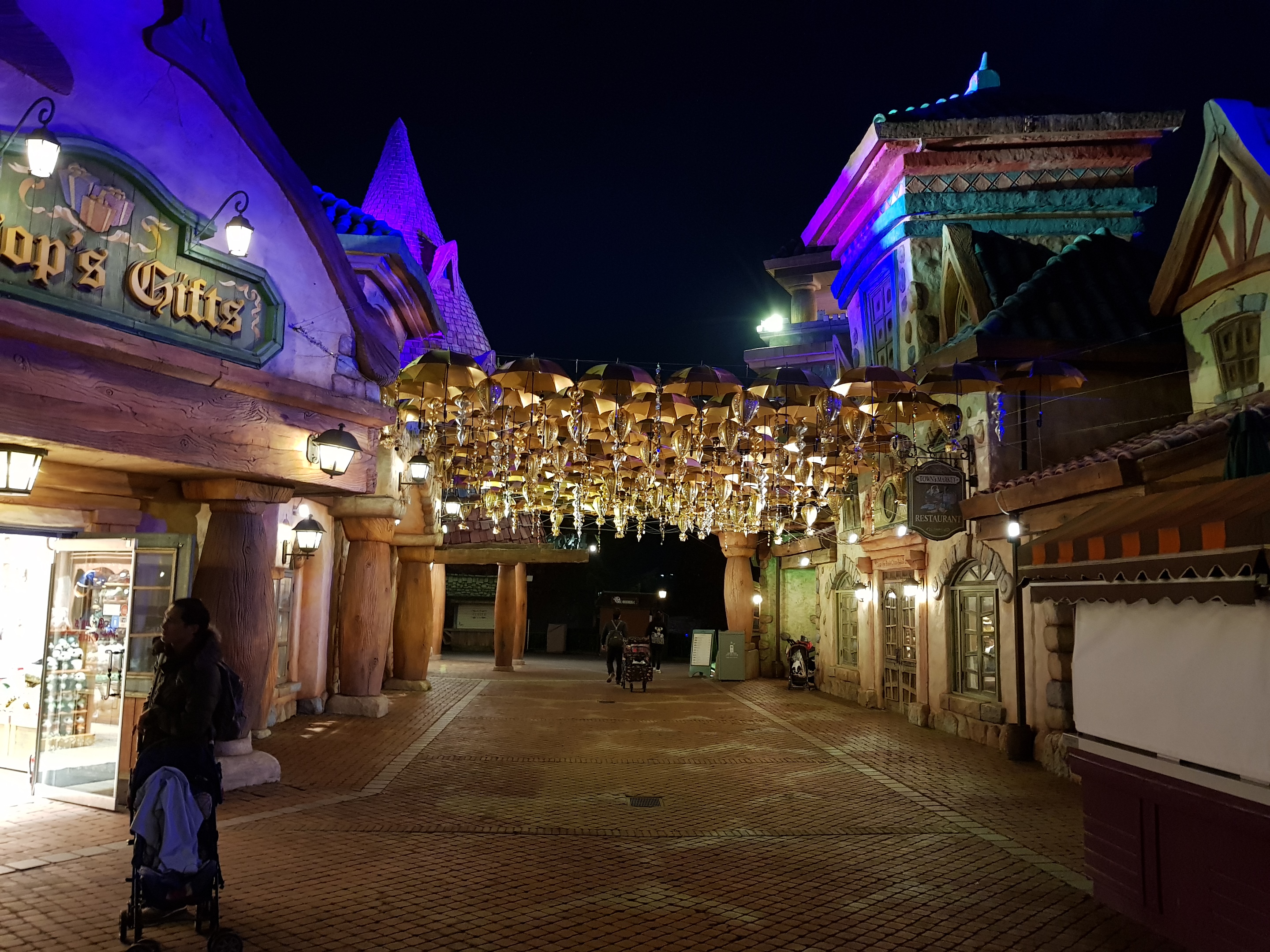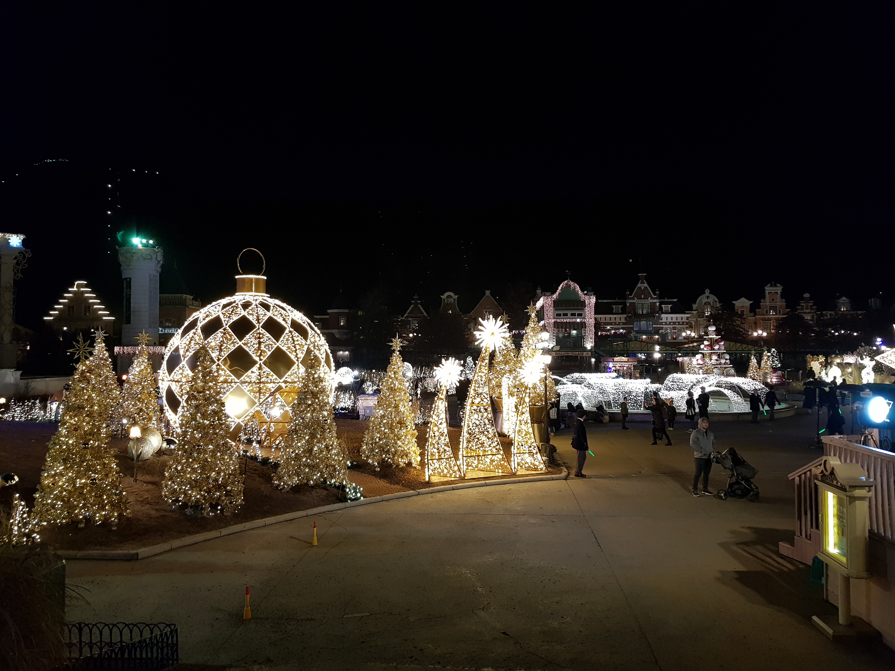 필자가 가장 좋아하는 장소인 유러피언 빌리지이다. 유럽 마을을 재현해 놓았다고 하는데 얼마나 사실적으로 묘사했는지는 몰라도 야간에 정원과 조명이 어우러진 광경은 정말 화려하고 멋지다. 크리스마스 판타지 시즌이라 사방이 온통 금빛으로 가득 차 있다.