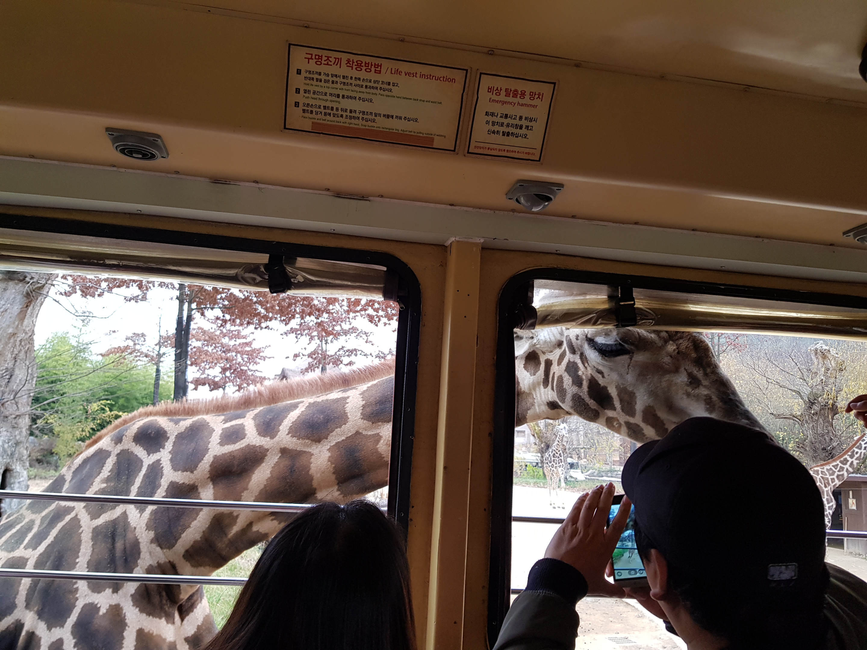 Visitors watches carnivore safari on a special bus surrounded by protective equipment to prevent the risk of a safety accident, but the Lost valley is a place to watch herbivorous animals, so the window of the car is somewhat opened, so you can see the animals closer.