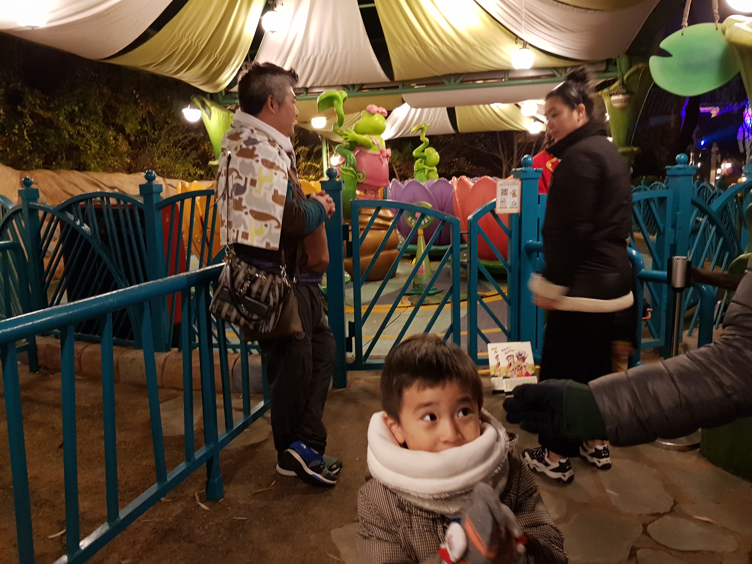 빙글빙글 돌아가고 위에서 아래로 떨어지고. 필자는 이런 종류의 기구 타는 것을 별로 좋아하지 않고 아이는 아직 키가 작아 자격미달이라 그냥 눈으로 보면서 지나갔다.