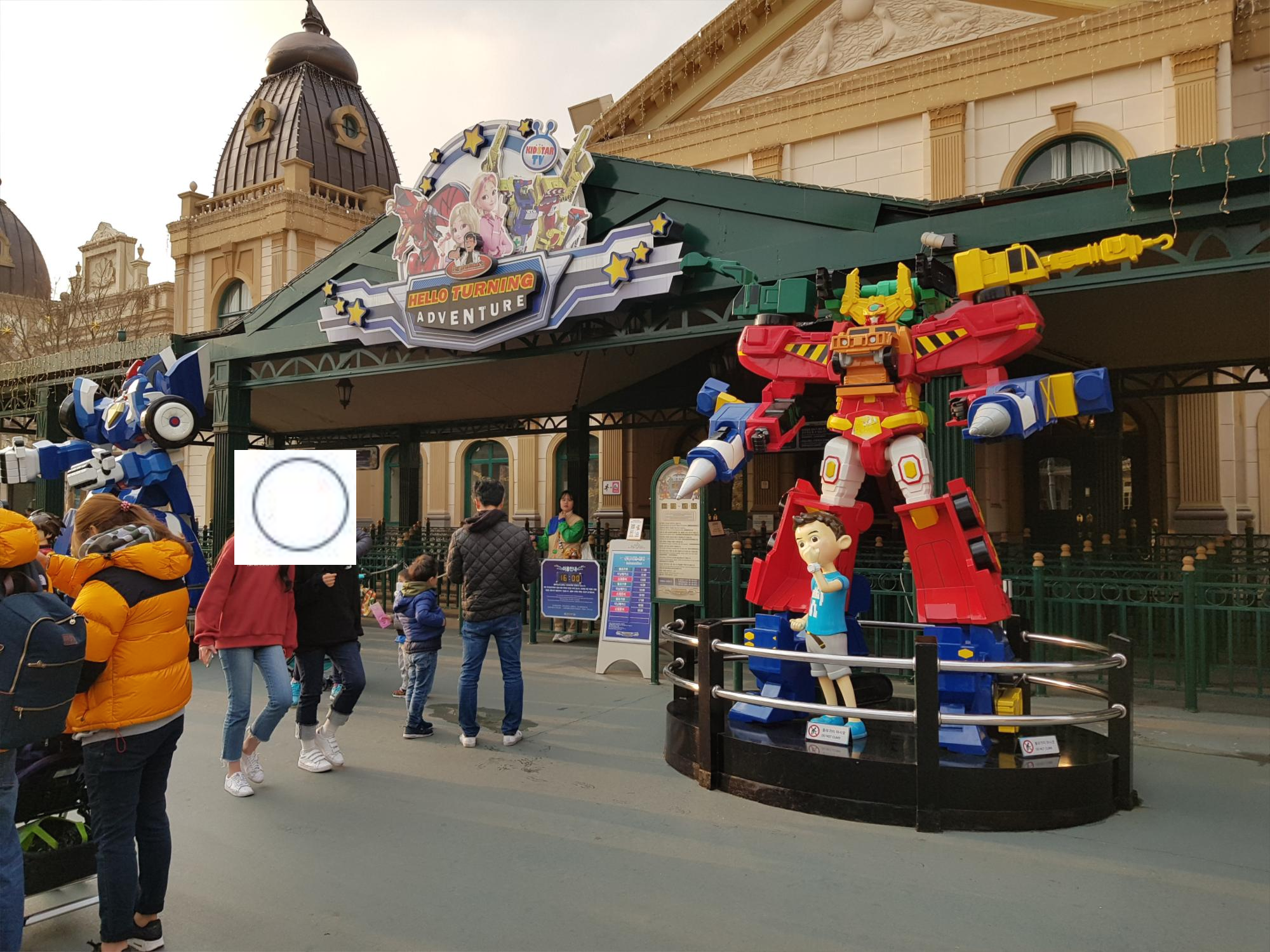 로스트 벨리를 나와 아이가 좋아하는 터닝메카드 영화를 보러 다시 언덕을 올라왔다. 입구 바로 앞에 있는 시설물인데, 아이들 취향저격 아이템으로서 이걸 보기 위해 육식동물 사파리 관람은 포기했다. ㅡㅡ;