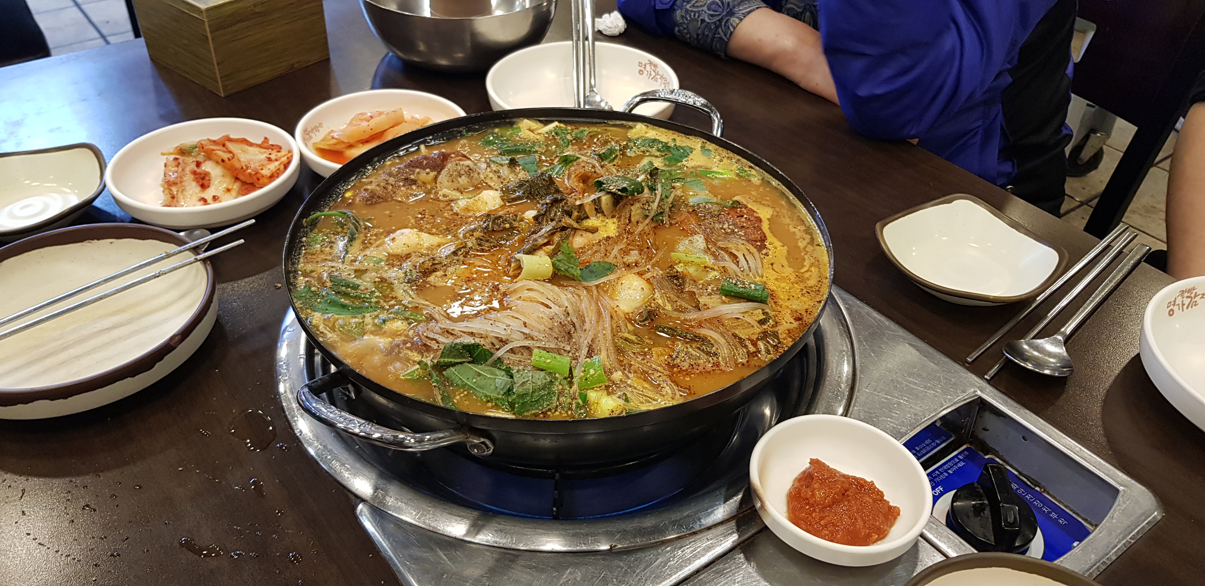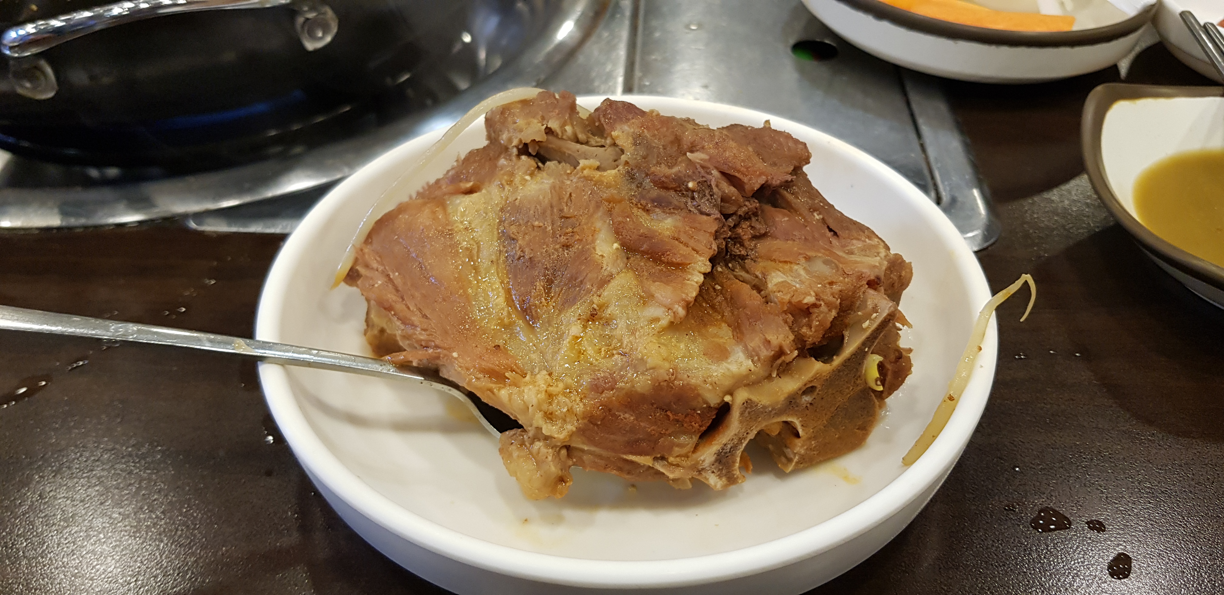 What is the taste of the broth of the patented Han-bang Gamja-Tang? As expected, the rich flavor of the herb could be felt in the soup. It's unusual but not heterogeneous and it caught the smell of pork well. I think, although it is not the best, it's a good enough taste.