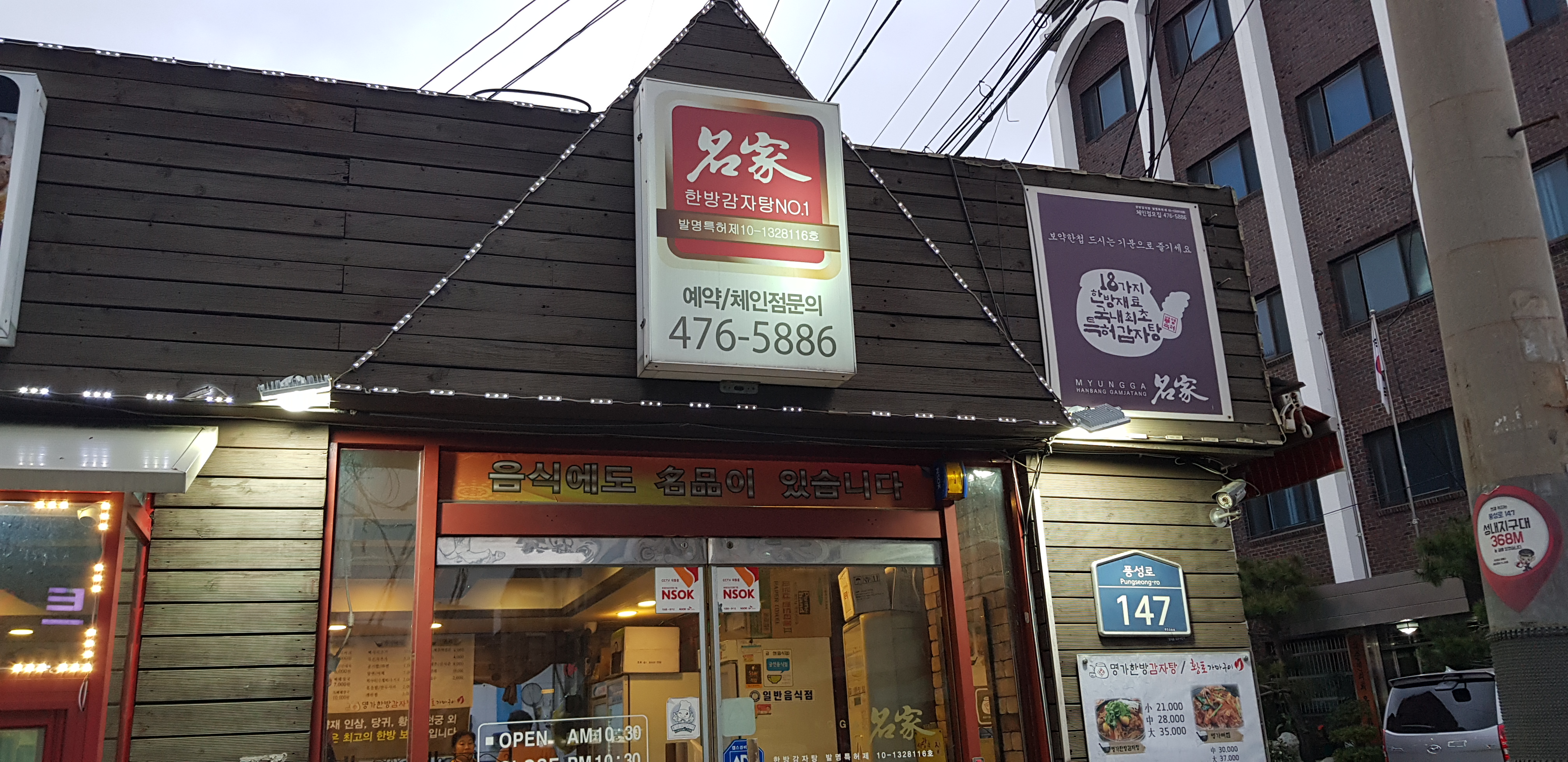 한국인이 외식을 할 때 즐겨찾는 메뉴중 하나라 감자탕 음식점은 거리 곳곳에 있어 찾기가 그리 어렵지 않다. 하지만 한약재를 이용한 감자탕으로 특허등록을 받은 음식점이 서울 올림픽 공원 근처에 있다고 해서 몽촌토성 방문길에 들러 보았다. 강동구 성내동 골목길에 위치한 조그만 음식점으로 요즘 네비게이션이 워낙 잘 발달되어 있어 찾는데 어려움은 없을 것이나 마땅한 주차공간이 없어 방문하실 때 약간 불편함을 감수해야 한다.