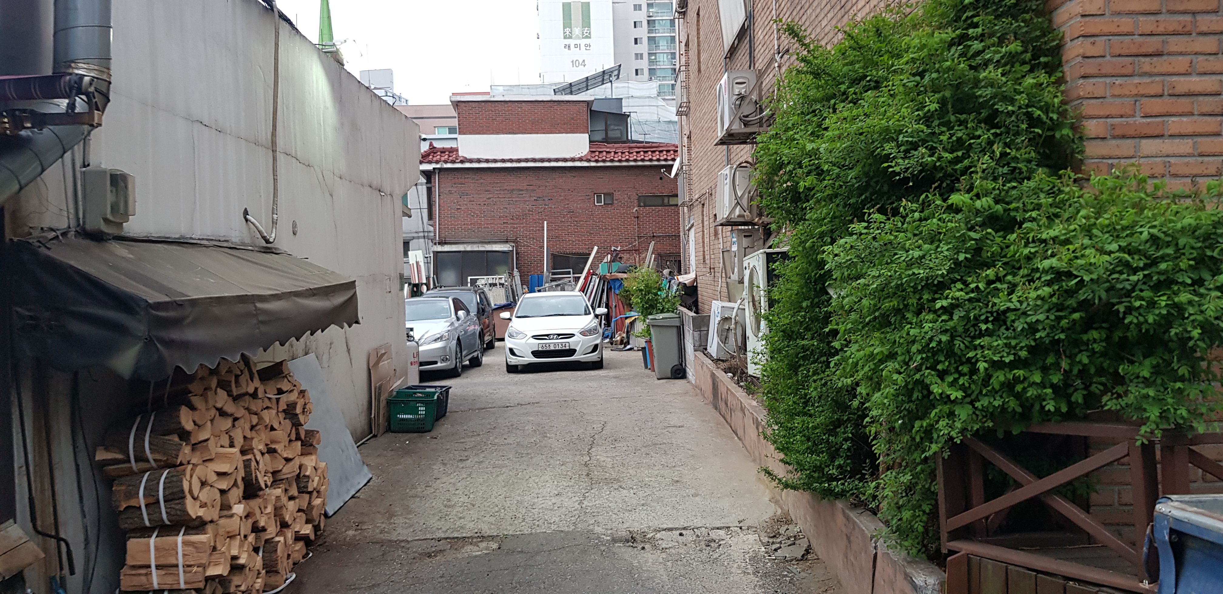 음식점 뒤에 작은 주차공간이 있으나 다른 집들과 공유하는 곳인지 이미 차들로 가득 차 있었다.