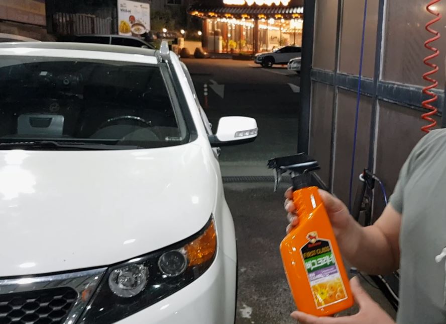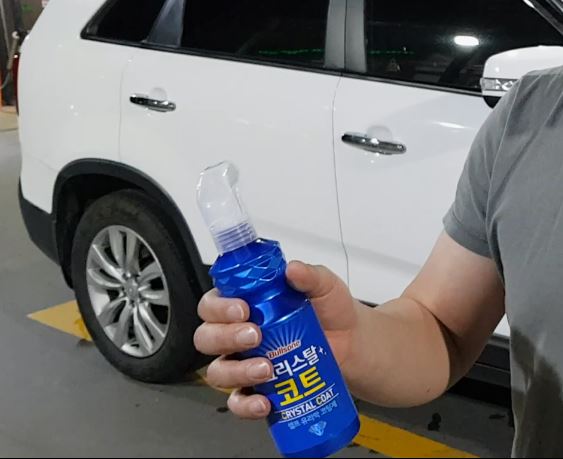 마지막 작업은 옵션입니다. 고체왁스만 가지고도 충분히 광택과 차량보호가 가능하다고 생각되시는 분들은 7번으로 마무리하세요. 저는 세차가 재미있어지고 난 후 이것저것 실험을 해보게 되었는데 그중 하나가 불스원 크리스탈 코트였습니다. 보통 유리막 코팅하면 주로 전문가들이 디테일링 샵에서 작업하는 것을 떠올리실 텐데요 이 제품은 액체왁스처럼 뿌리고 가볍게 닦아내는 유리막 코팅제라고 합니다.