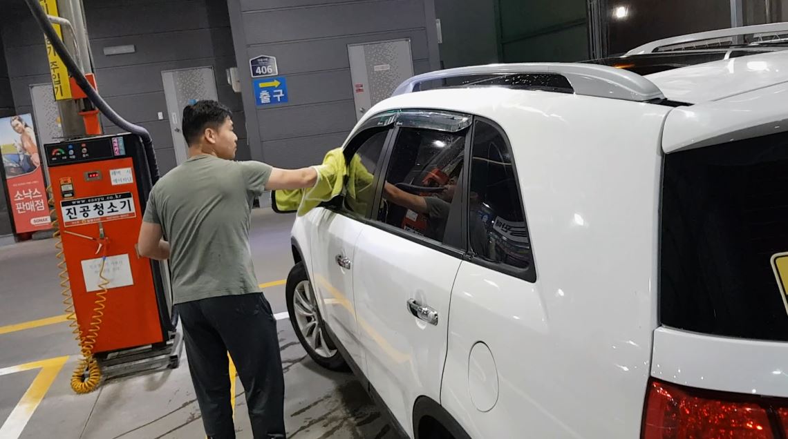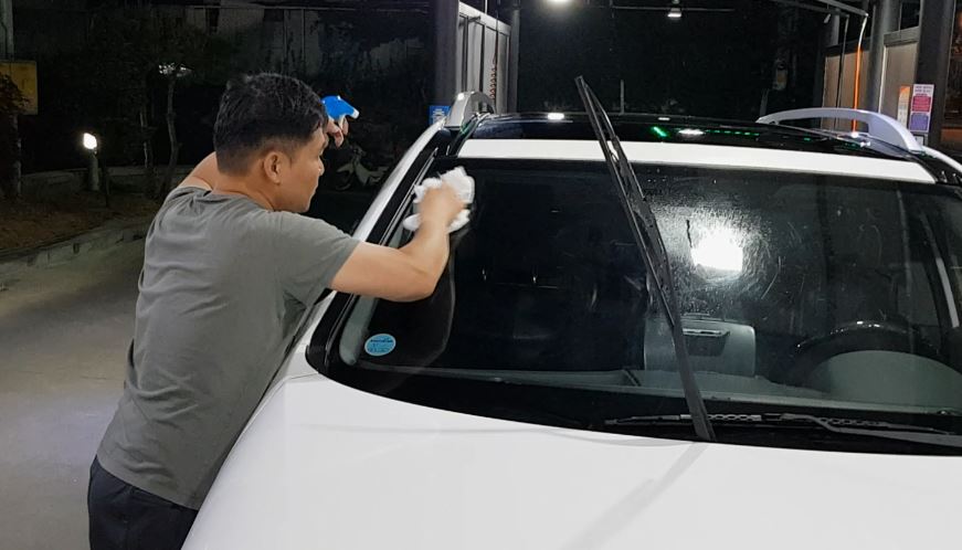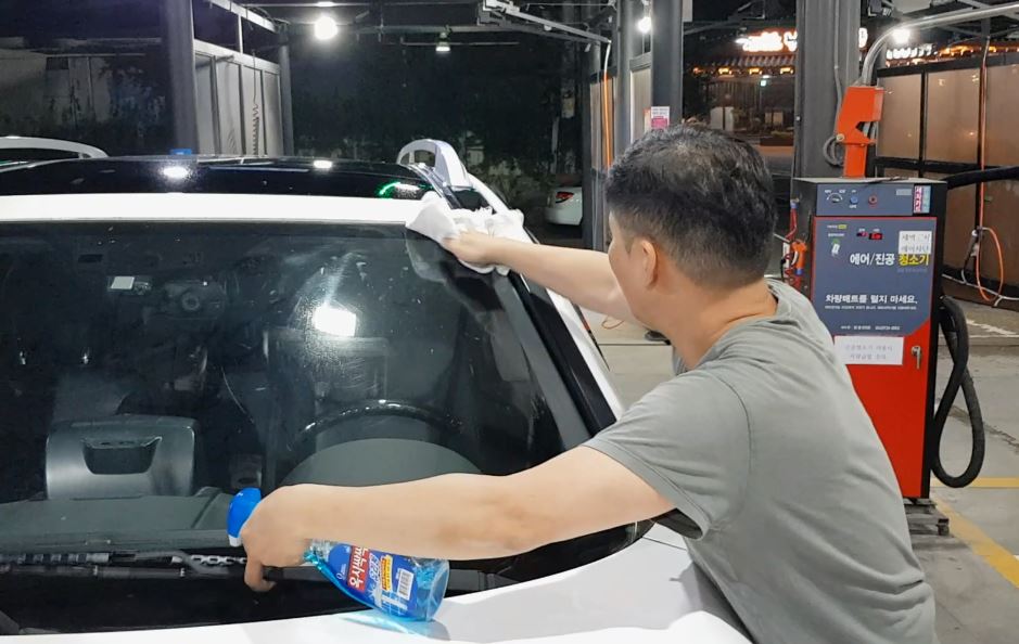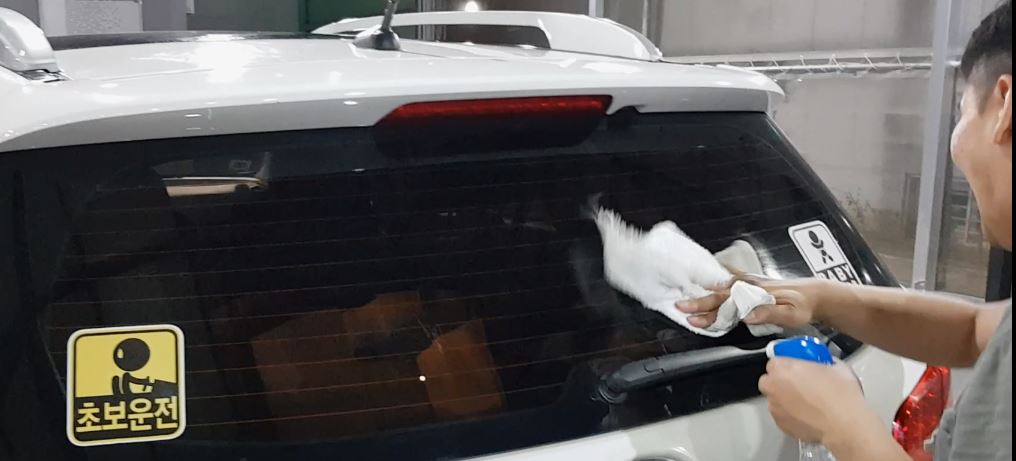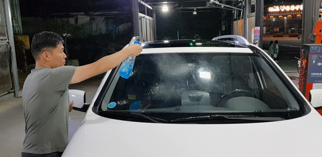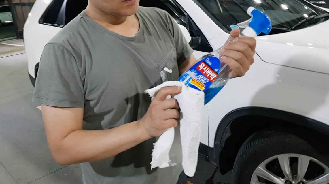 유리창은 유리세정제를 이용해서 닦아주시면 되는데 물기를 닦은 후 유리세정제를 이용해서 재 작업하지 마시고 물기가 남아있는 상태에서 바로 세정제를 분무해 주시고 닦아주시는 것이 효율적으로 세차할 수 있는 방법이에요! 유리는 기스가 거의 발생하지 않기 때문에 집에서 쓰시는 마른걸레로 깨끗이 닦아 주세요.