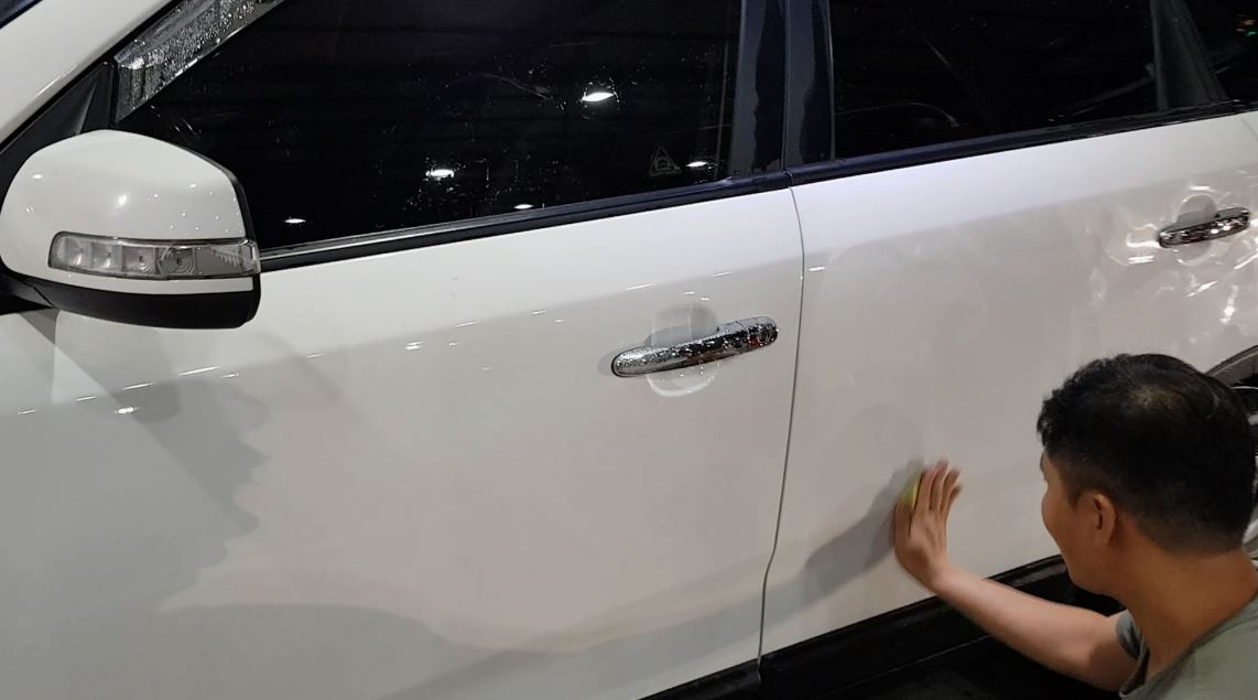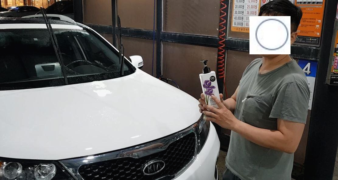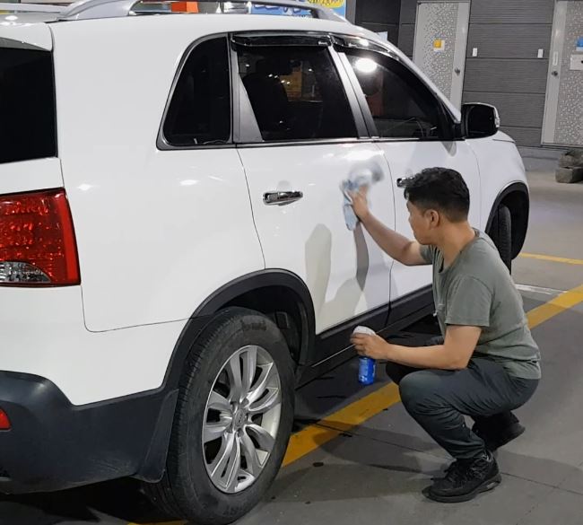 말씀드린 대로 차량 군데군데 샴푸를 발라줍니다.