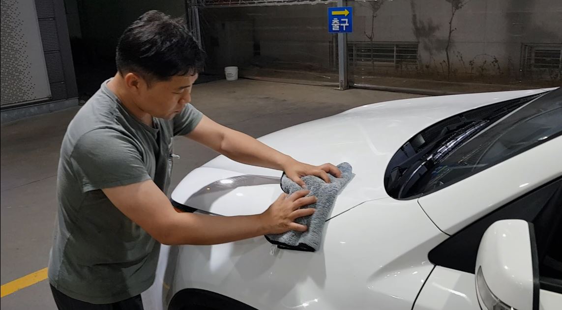 물기를 닦는 타월은 부드럽고 물기 흡수가 잘 되는 별도의 전용 타월을 구매하실 것을 추천드립니다.집에서 사용하시는 마른걸레는 차량 표면에 기스를 유발할 수 있으니 이번만큼은 재활용의 의지를 한 번 참아주세요 ㅎㅎ 제가 겨울용에서 보여드렸던 타월의 경우 첫 사용시 먼지가 많이 묻어나와 실망했는데 계속 사용하다보니 물기제거용으로는 꽤 좋습니다.
