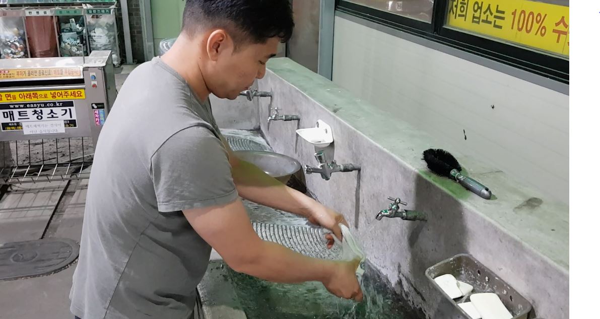 편하게 워시 미트로 차량 표면에 샴푸를 적당히 문질러 주셨으면 다시 수돗가로 가셔서 대충 빨아 줍니다. 기다리시는 다른 분들을 위해 제대로 된 세탁은 집에서 하시고 이곳에서는 거품만 대충 제거한다는 생각으로 빠르게 해 주세요!