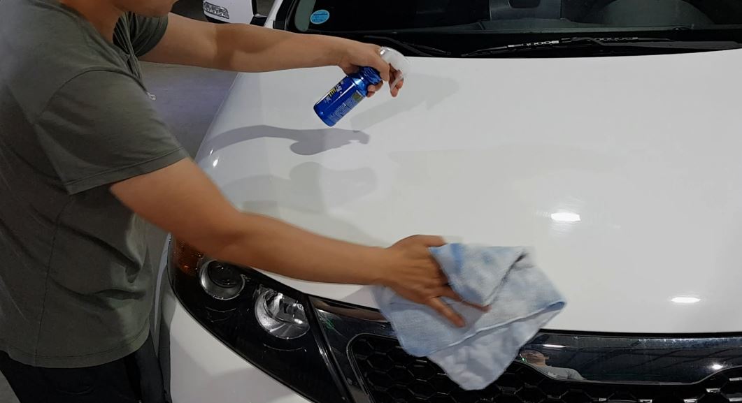 작업은 어렵지 않아요 차량 표면에 제품을 뿌려주고 바로 타월로 닦아 주시면 됩니다. 가격이 좀 있는 제품이기에 너무 많이 뿌리지는 마시구요 ㅎㅎ 설명서를 보면 제품이 스프레이 형태로 날아가는 것이 싫으신 분들은 타월에 제품을 뿌려서 사용하라고 나와 있습니다. 저는 해본 적 없지만 취향에 따라 선택해서 작업하세요~ 아 참! 이때 차량 전체에 제품을 다 뿌리고 닦아내는 것은 얼룩이 생길 수 있으니 참아주세요.