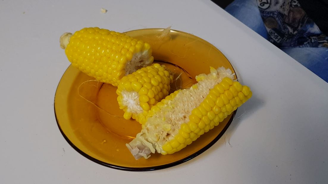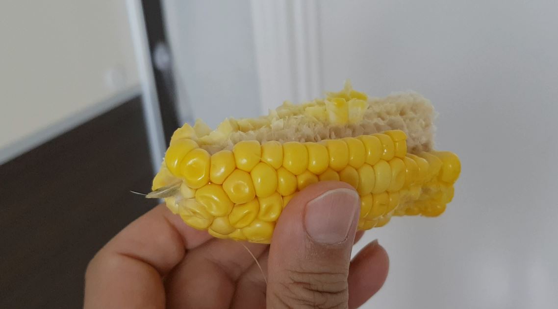 그럼 맛을 한번 보겠습니다. 쪘음에도 불구하고 아삭아삭한 식감은 남아 있었고요 일반 옥수수에 비해 물이 많은 것으로 확인되었습니다. 찌기전보다 단맛은 더 살아나고 외관상 노란색이 더 진해지네요.