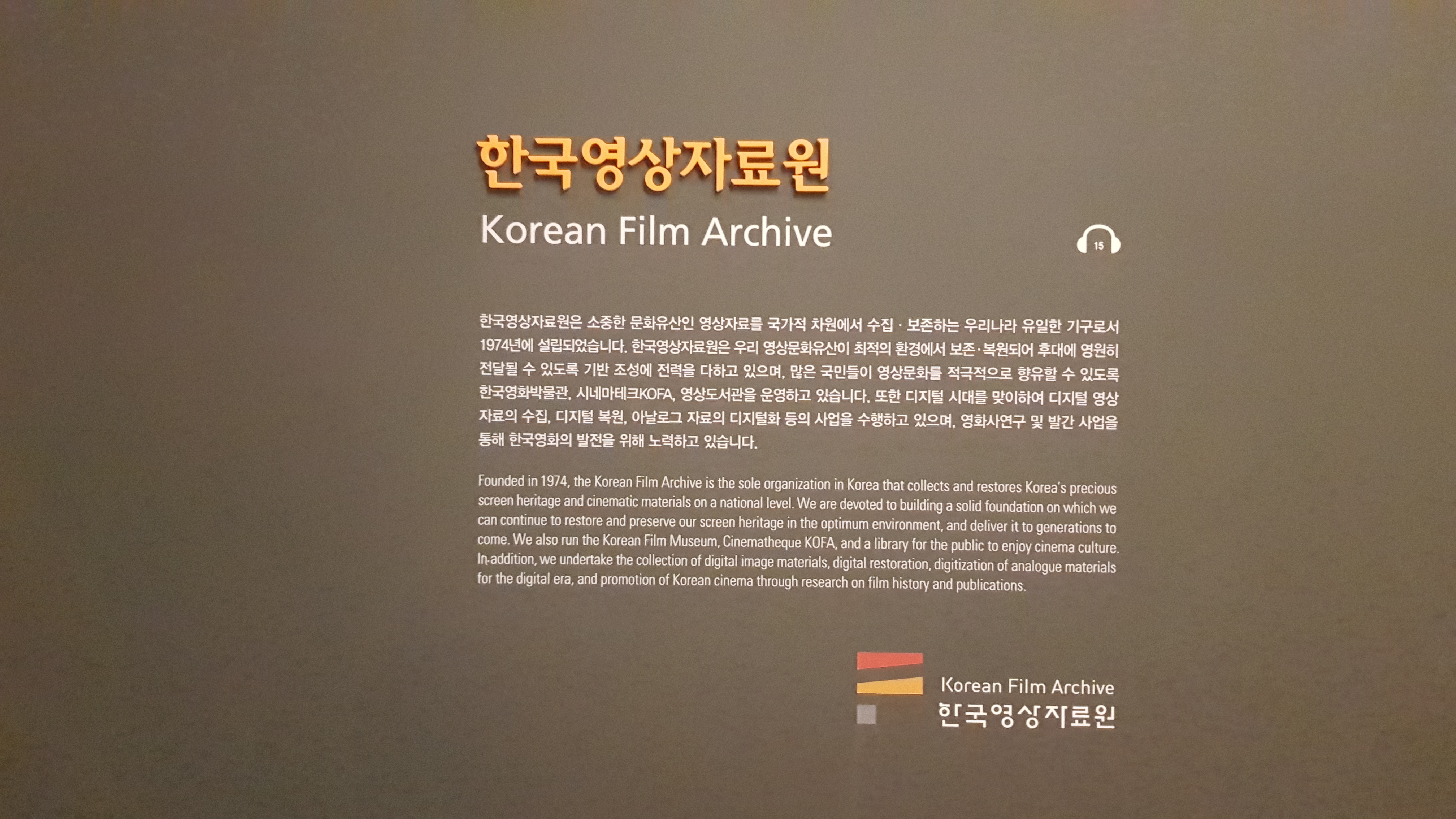 영화박물관을 관리중인 한국영상자료원에 대한 설명이다. 한국영화의 발전을 위해 오늘도 노력중인 관계자 분들께 감사의 말씀 드린다.