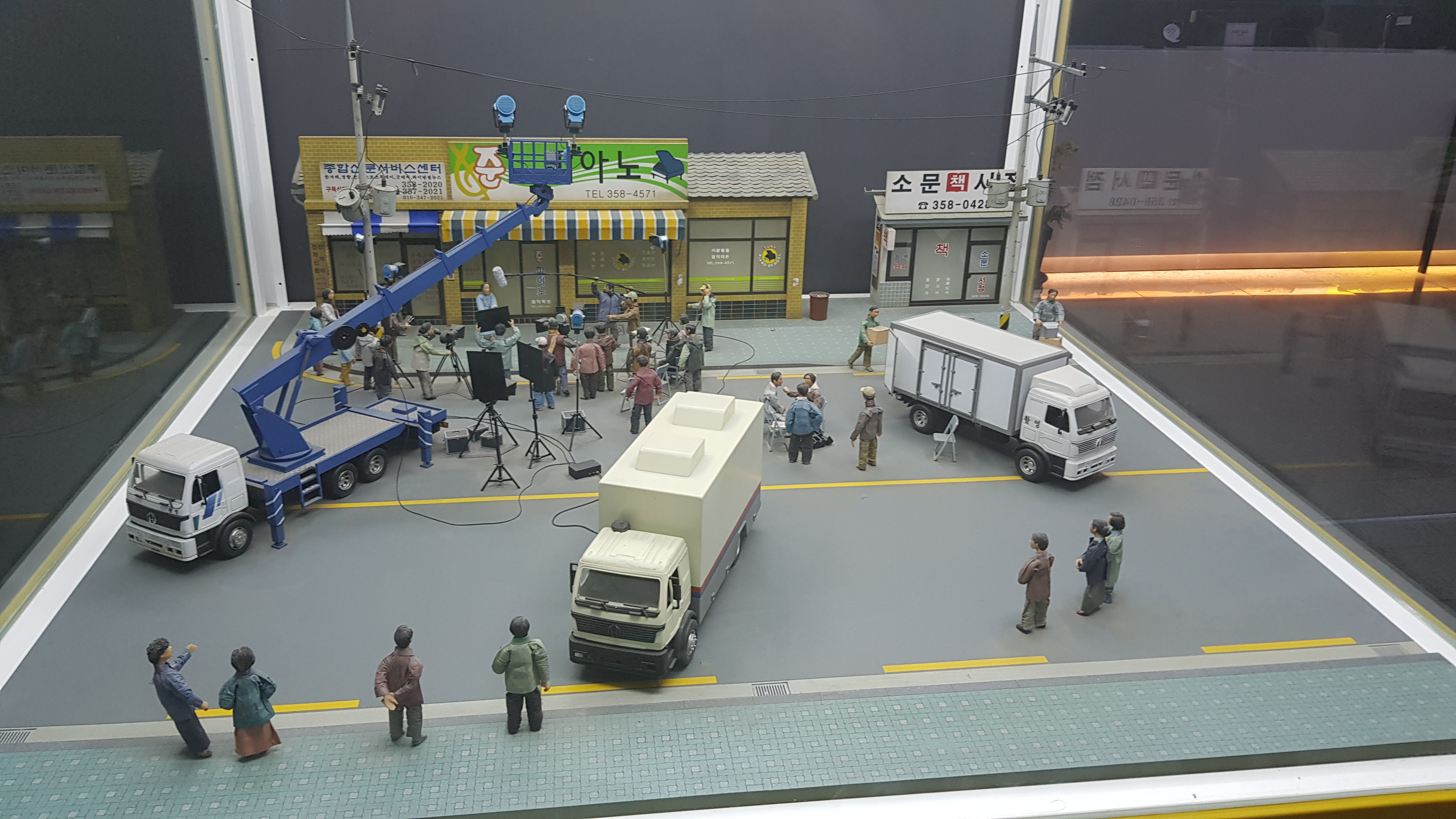 1970~80년대의 영화 촬영모습을 인형으로 재현해 놓은 전시물. 필자도 근처에서 영화나 드라마 촬영이 있다는 소리를 들으면 아래 구경꾼들처럼 먼 발치에서 구경을 하곤 했다.