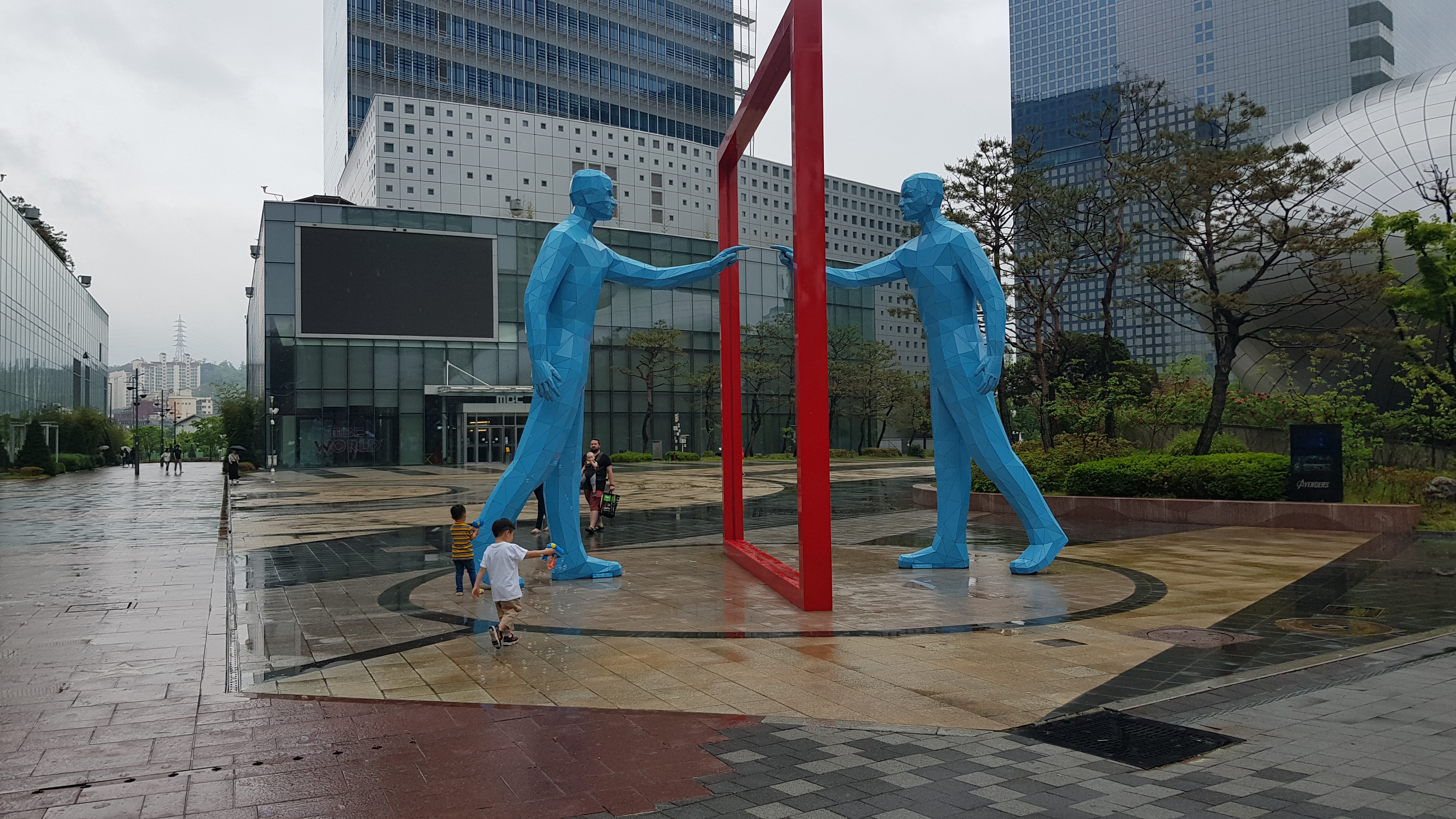 한국영화의 과거와 현재가 만나고 있는 것 같은듯한 조각상.