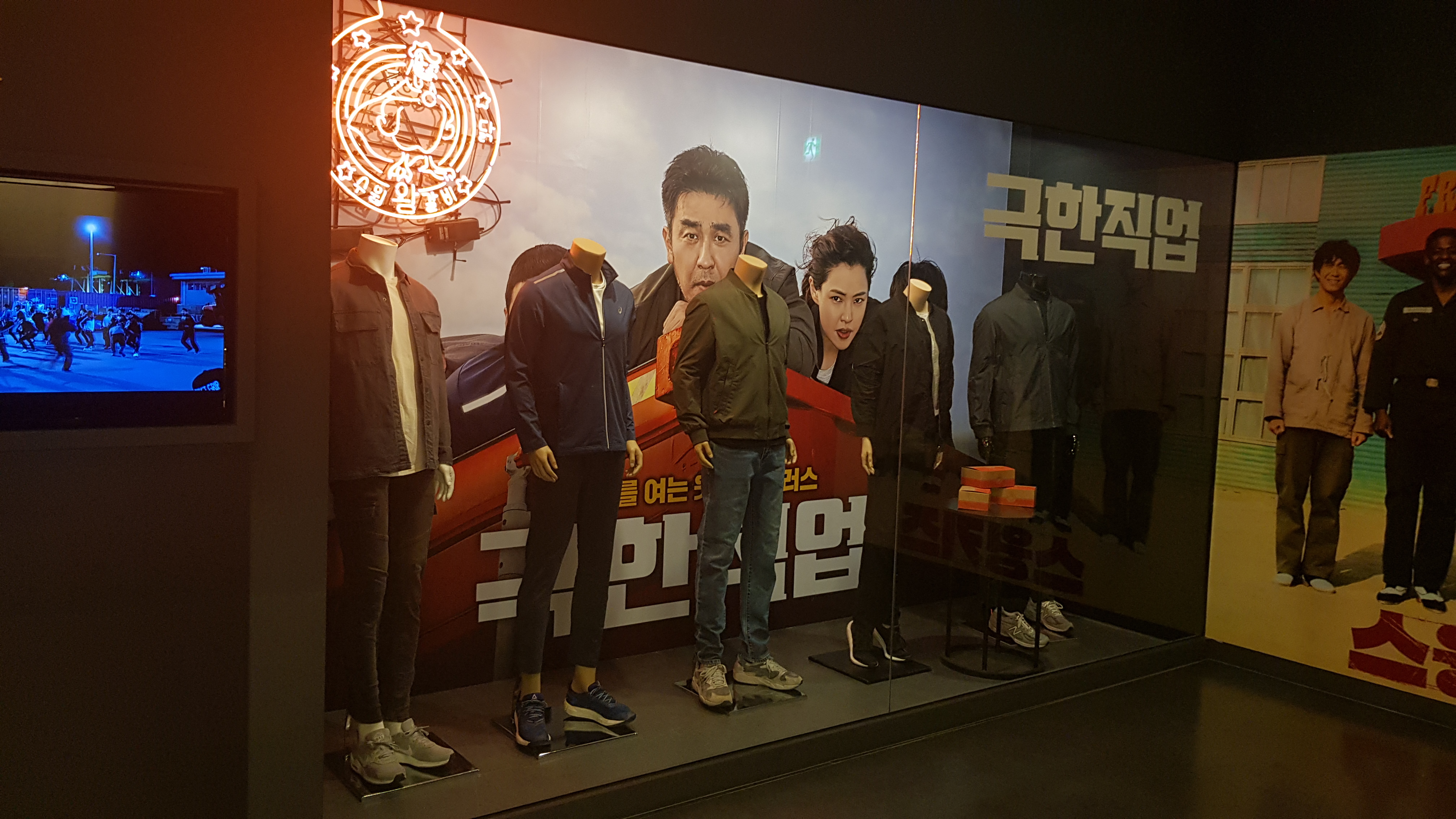 감독조차도 예상하지 못했지만 천만 관객의 위업을 달성한 극한직업의 포스터 및 주인공들이 입었던 의상들이 전시되어 있다. 투자비가 많이 들어가지 않아도 주제가 무겁지 않아도 재미있으면 관객의 선택을 받을 수 있다는 공식을 증명해 준 영화이다. 이 영화에서 간접 홍보된 수원왕갈비통닭은 영화흥행 후 실제 여러 치킨집에서 메뉴에 추가하여 현재까지 판매중에 있다.