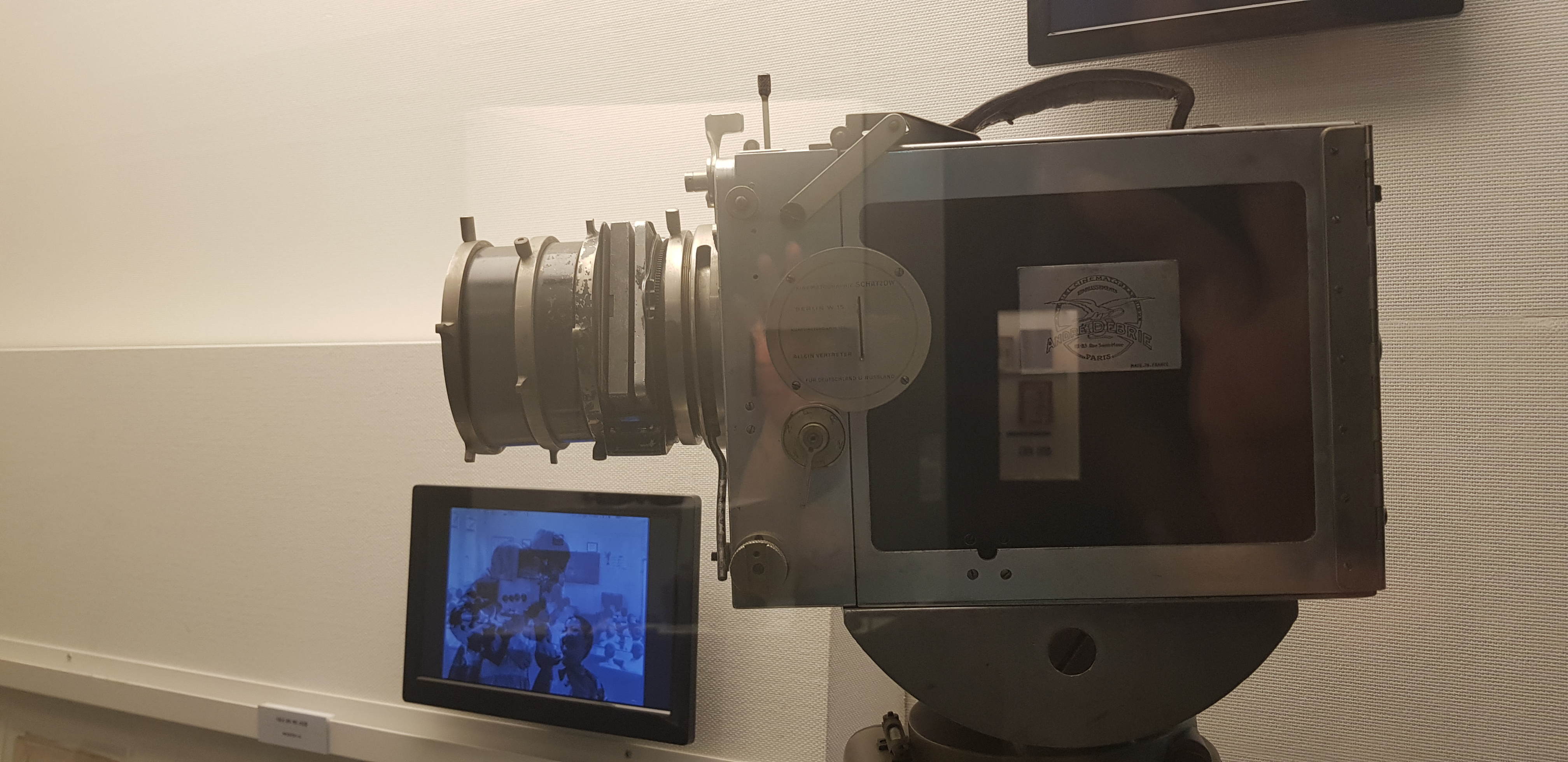 1900년대 초반 한국영화 초창기에 사용되었던 촬영용 카메라, 필름과 대본들.