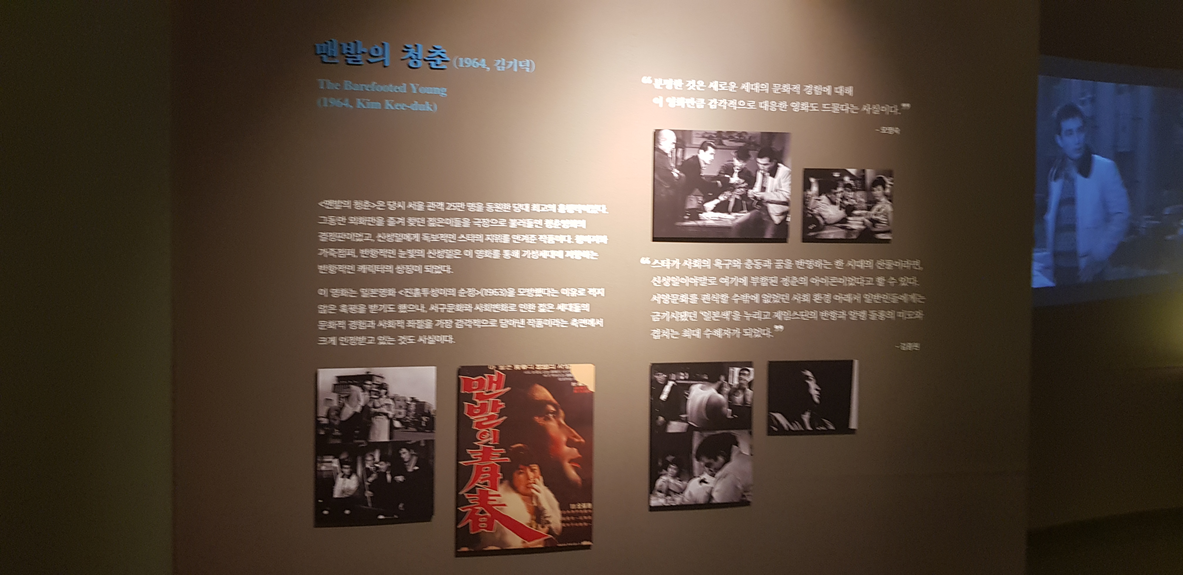 전시관 내에는 맨발의 청춘에서 신성일이 연기한 주인공 두수의 방을 재현한 공간이 전시되어 있었다.