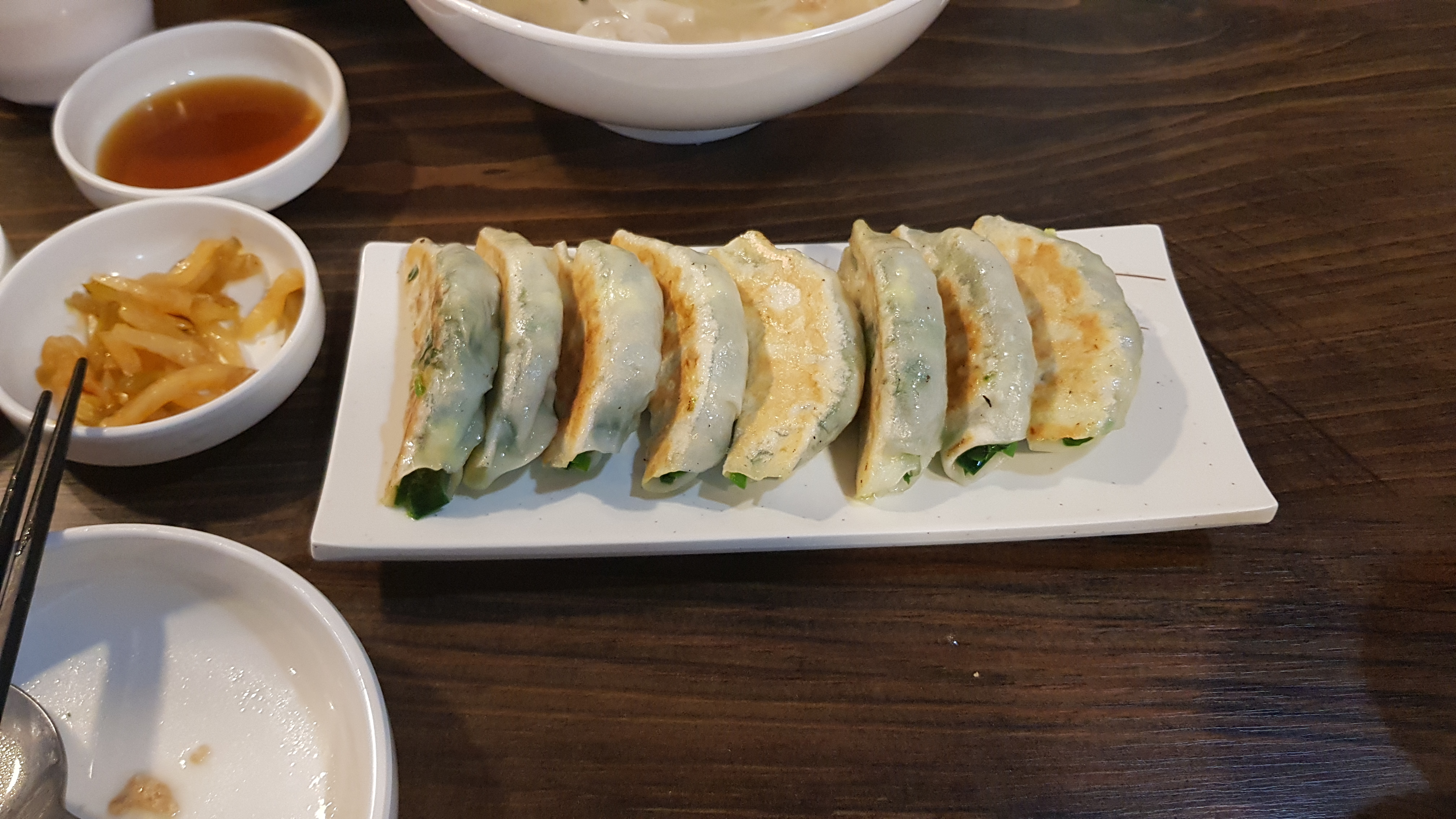 하지만 부추만두는 마지막에 먹었음에도 불구하고 가장 깊은 인상을 남겨 주었다. 만두소는 부추와 계란으로만 만들어진 것 같은데 지나치다고 까지 할 수 있는 단순한 구성이 의외로 담백하면서 깔끔했다. 지짐만두는 기름이 많이 둘러져 있기 때문에 느끼함이 빨리 찾아오기 마련인데 부추가 이 느끼함을 잡아주는 것 같았다. 다른 만두집에서는 먹어보지 못한 색다를 맛을 느낄 수 있었다.