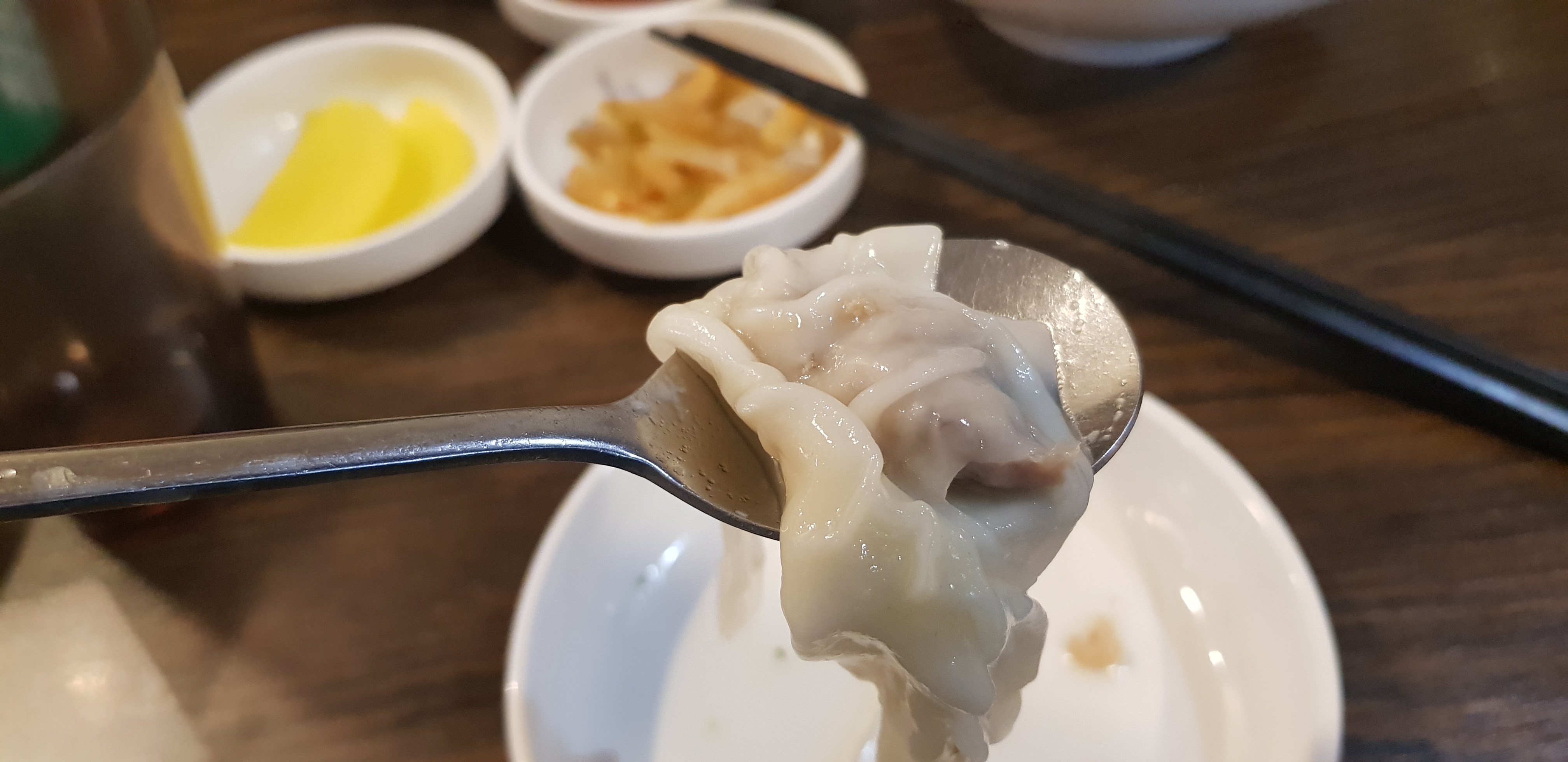 다음으로 나온 훈둔면. 훈둔면이라는 이름 자체가 생소하여 어떤 음식인지 궁금했는데 우리나라의 사골 만두국과 비슷한 맛을 가지고 있었다. 다만 중간 굵기의 면인 중면과 숙주나물이 들어 있어 색다른 느낌을 주었다.