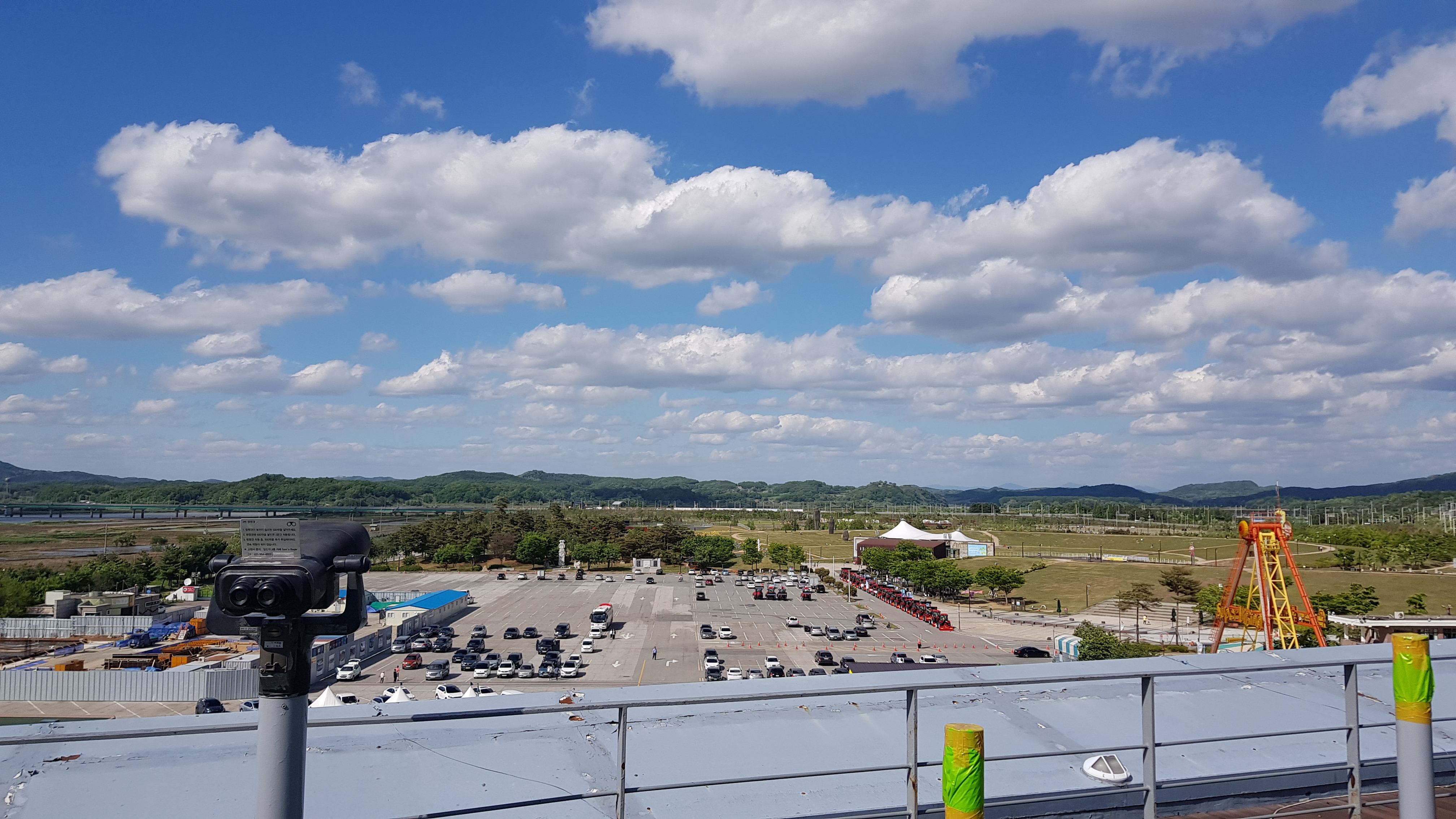 게다가 날씨도 화창하여 하늘에 무수히 많은 구름배가 떠 가는 것처럼 보였다. 아래 사진의 망원경으로 민간인 출입통제 구역의 경관을 살펴 볼 수 있는데 이북에 고향이 있는 분들이 조금이라도 고향과 가까운 곳을 보기 위해 많이 이용하지 않을까.