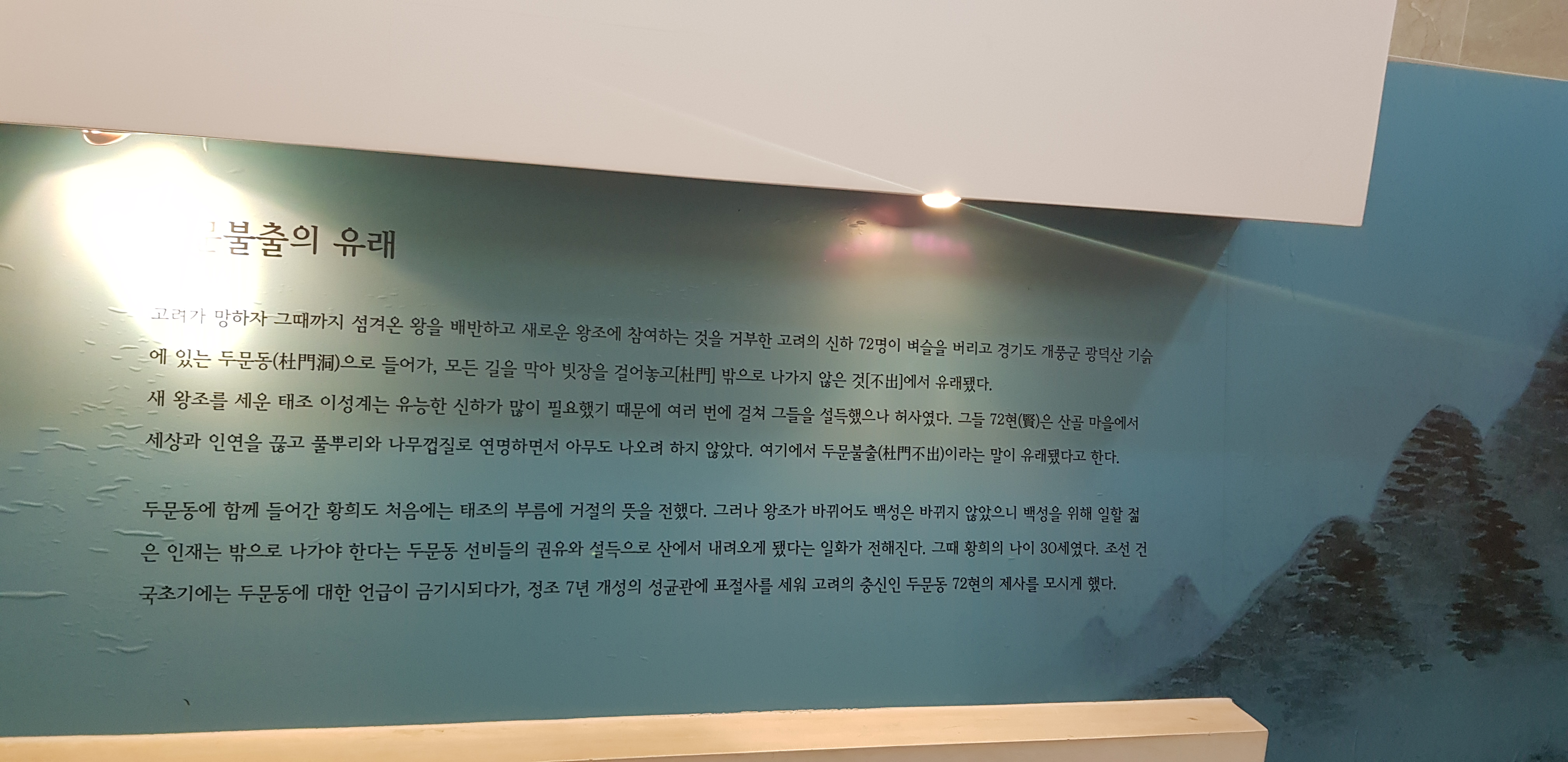 신발을 벗고 안에 들어가서 관람할 수 있으며 방촌 선생의 삶에 대한 이야기를 간단히 돌아볼 수 있는 곳이었다.