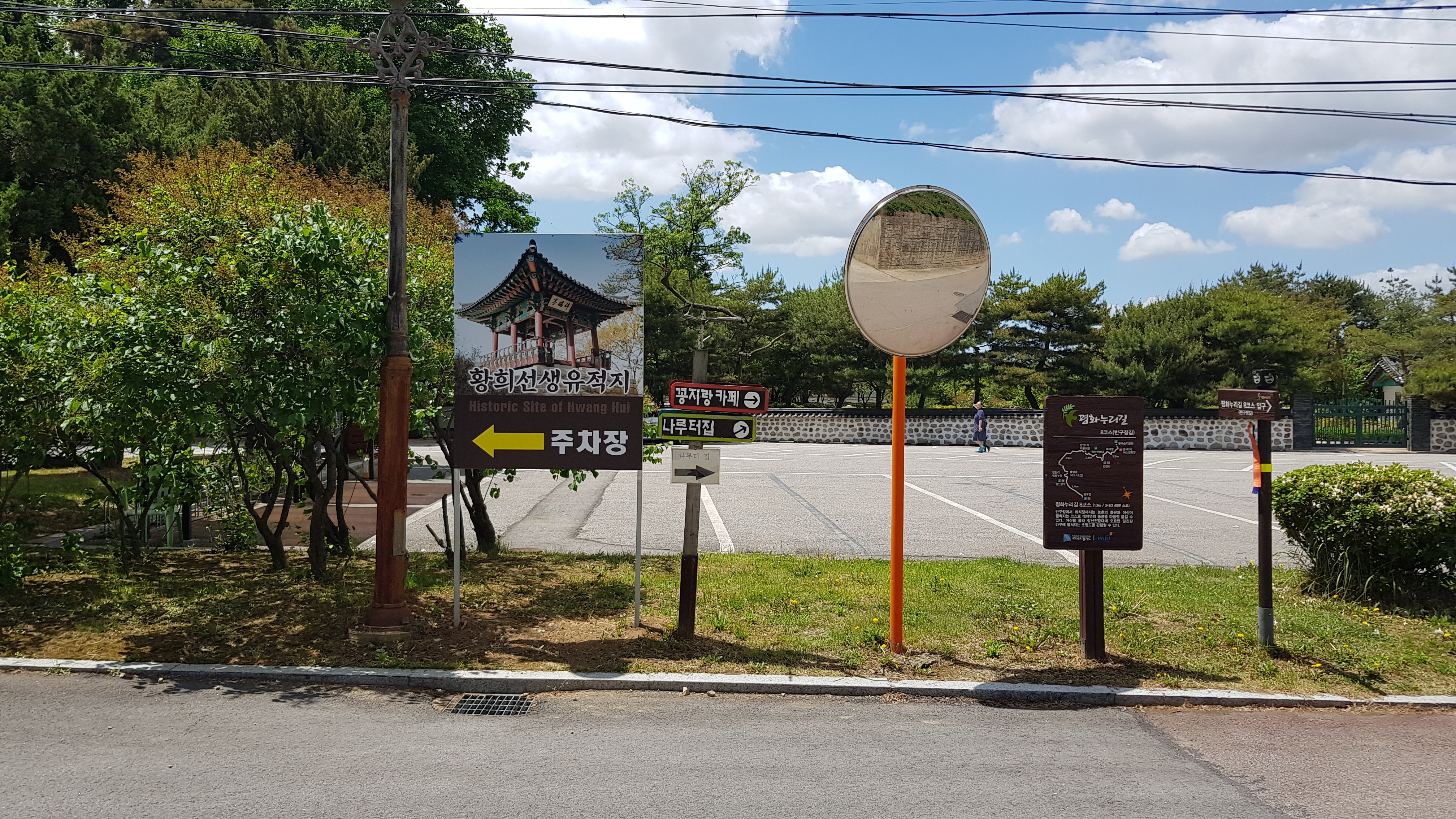 굴다리를 통과하면 아래와 같이 황희선생 유적지의 주차장을 안내하는 표지판이 보인다.