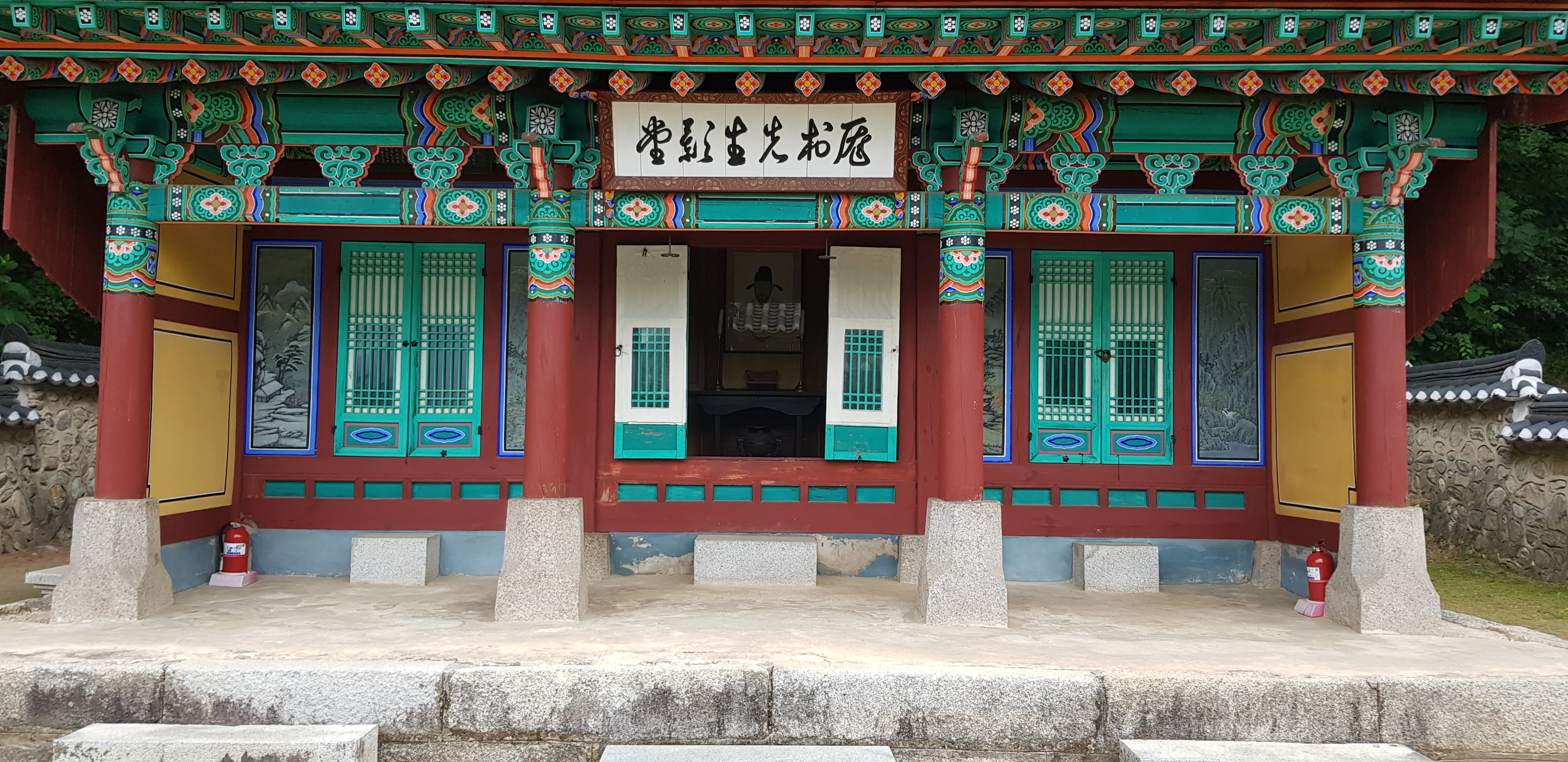 영정속의 선생은 필자가 상상한 신선 느낌이 아니라 중년의 모습을 묘사해 놓은 것이었다. 약간 아쉽기도 했으나 생전 선생의 성품을 짐작할 수 있었다. 키는 훤칠할 것 같고 갸름한 얼굴에 시원하게 자리잡은 이목구비는 미남형이다. 작고 날카로운 눈은 예리하고 철저함, 굳게 다문 입술에서 신중함을 예상할 수 있었다.