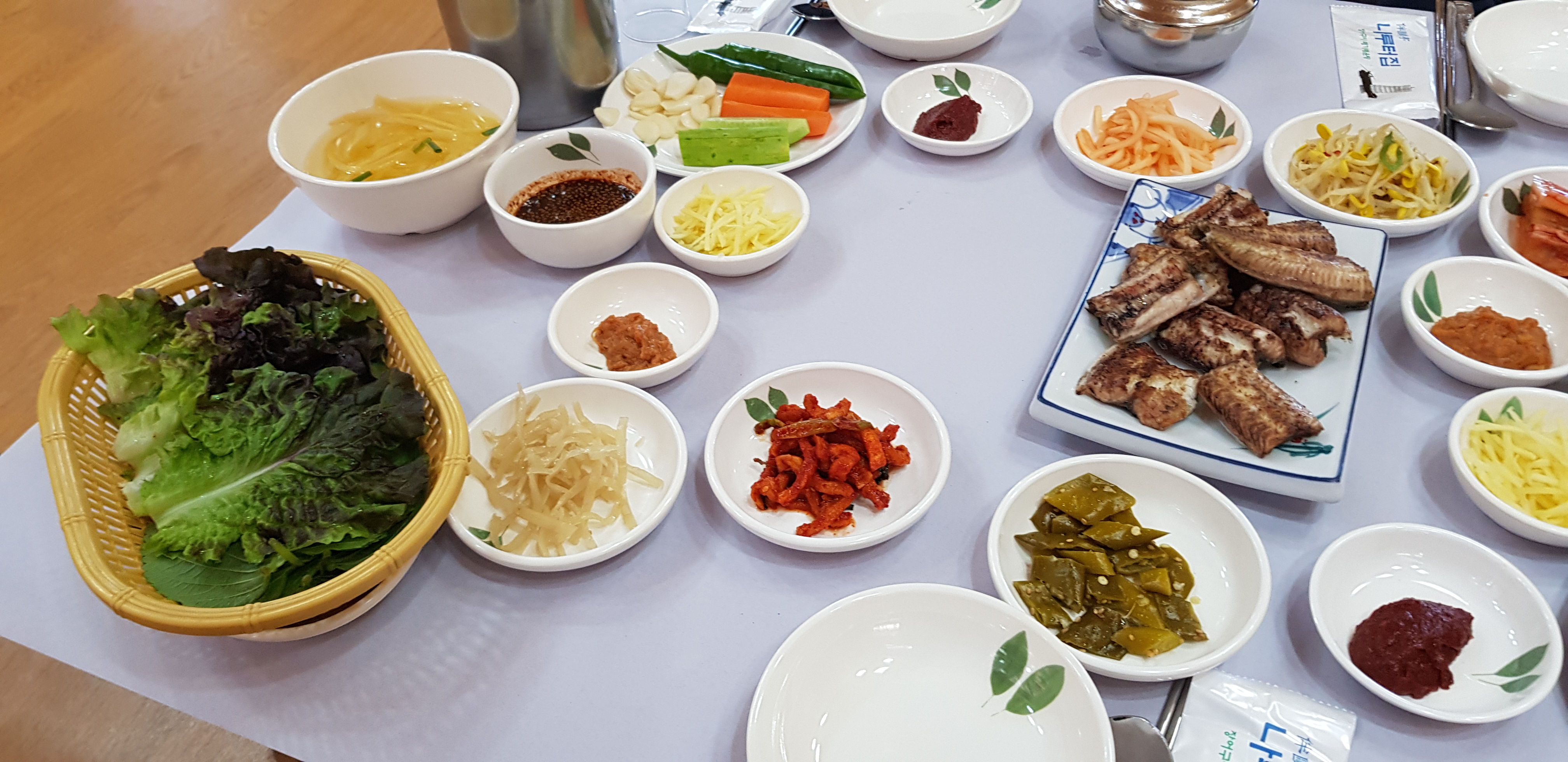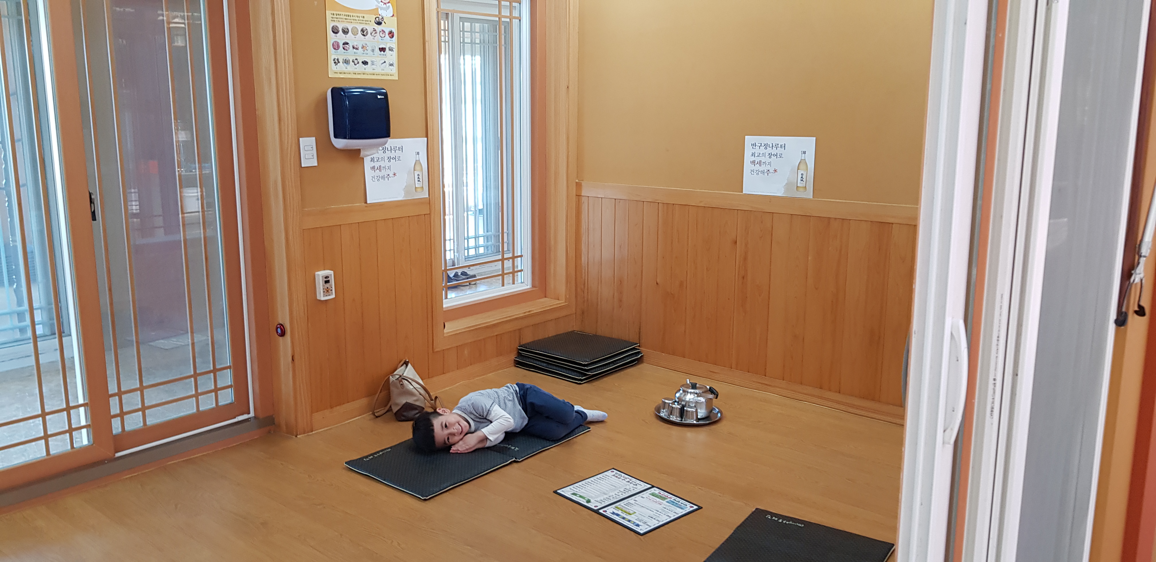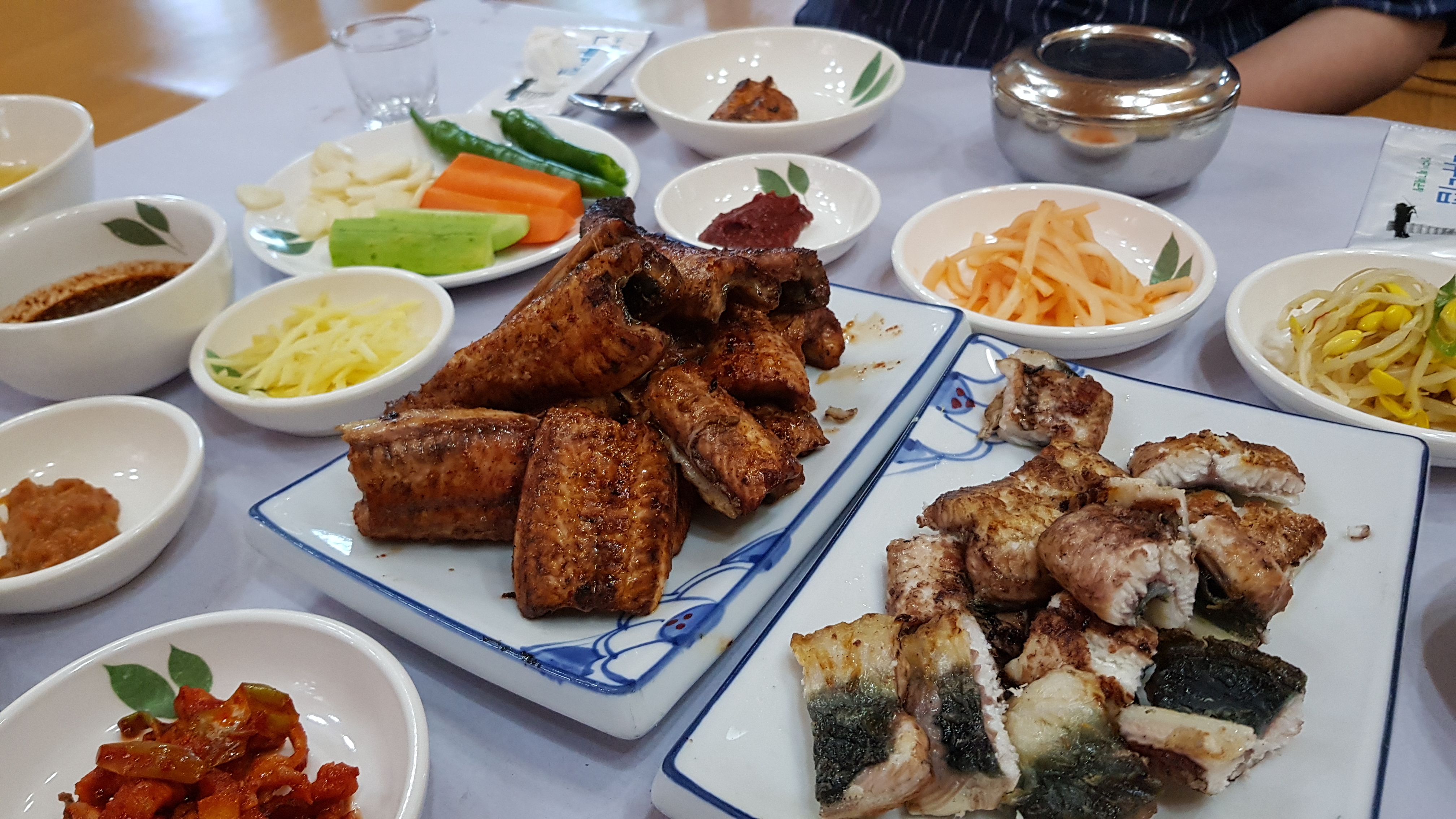우리도 그 중 하나의 방에 자리를 잡았다. 이 집의 특이한 점은 방안에 테이블이 없고 방석에 앉아 기다리면 종업원 분들이 음식이 차려진 테이블을 들고 들어온다. 많은 손님들에게 접대하기 편한 시스템으로 고안된 것으로 보여지는데 많은 손님들이 찾는 큰 규모의 몇몇 음식점에서 이런 방식을 사용하는 것을 본 기억이 난다.