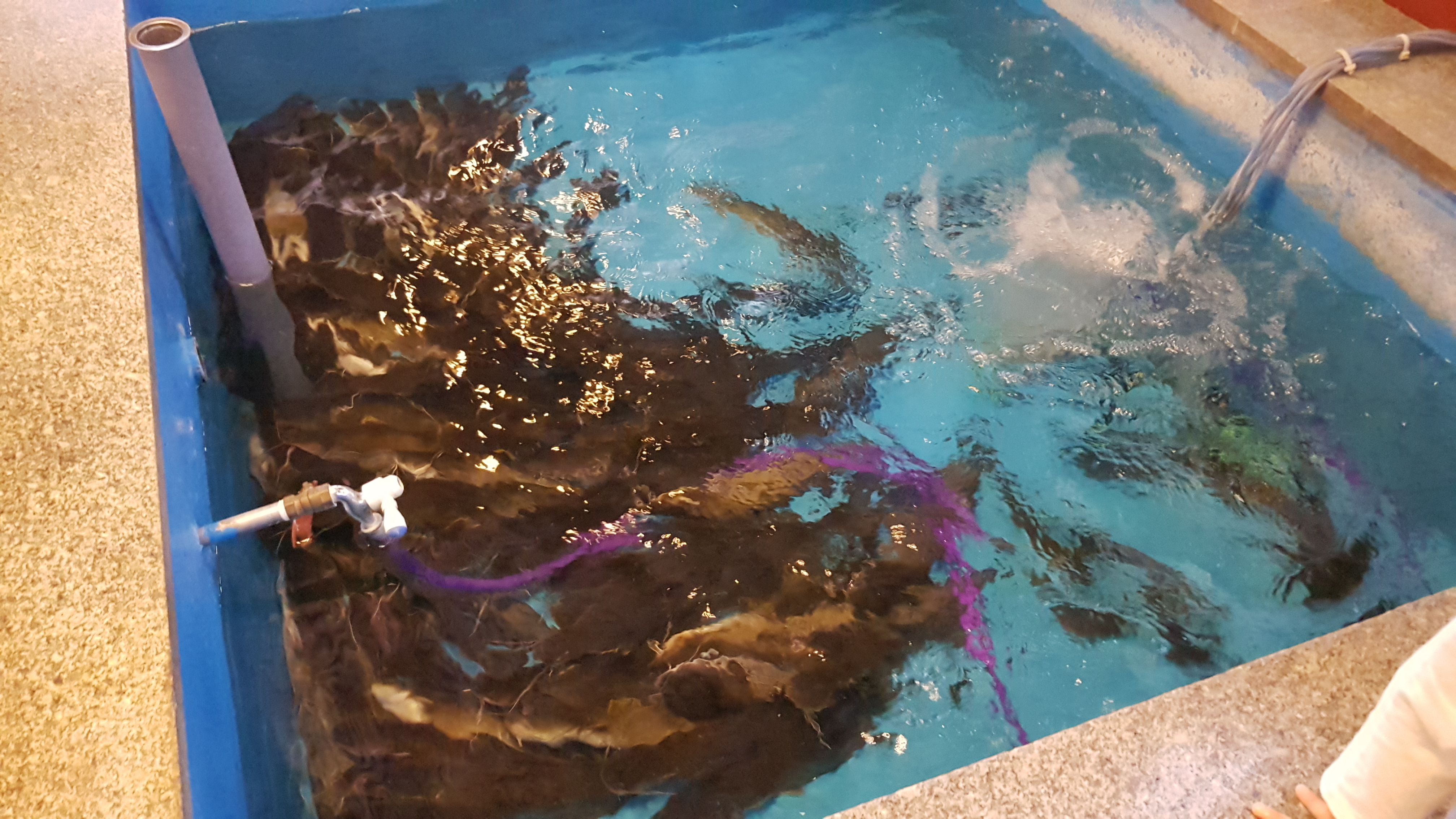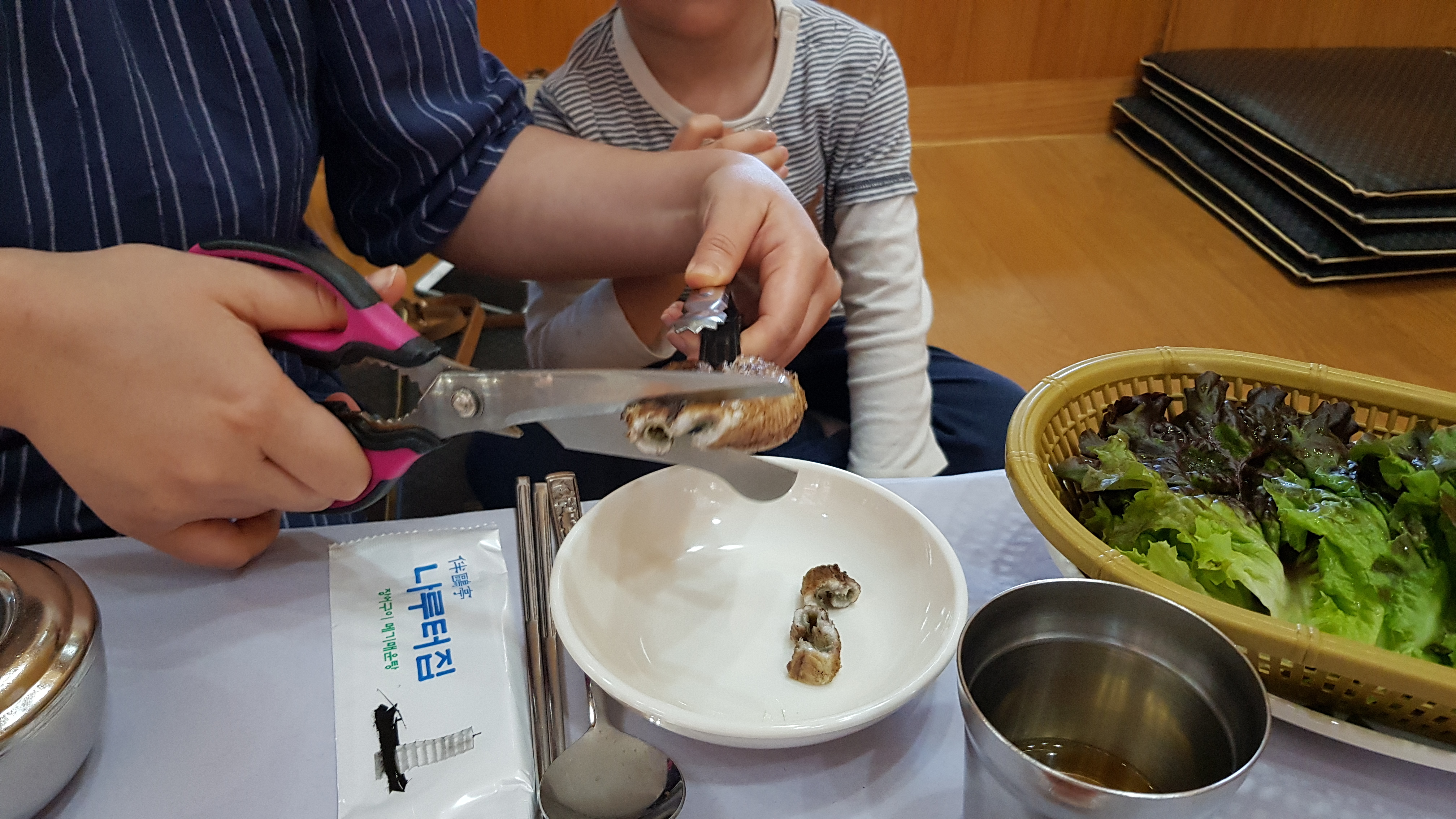 홀 안에 아래와 같은 장어 수족관이 있는데 관상용은 아닌지라 위에서 내려다 볼 수 밖에 없다. 아이와 한동안 재미있게 구경하다 안으로 들어왔다.