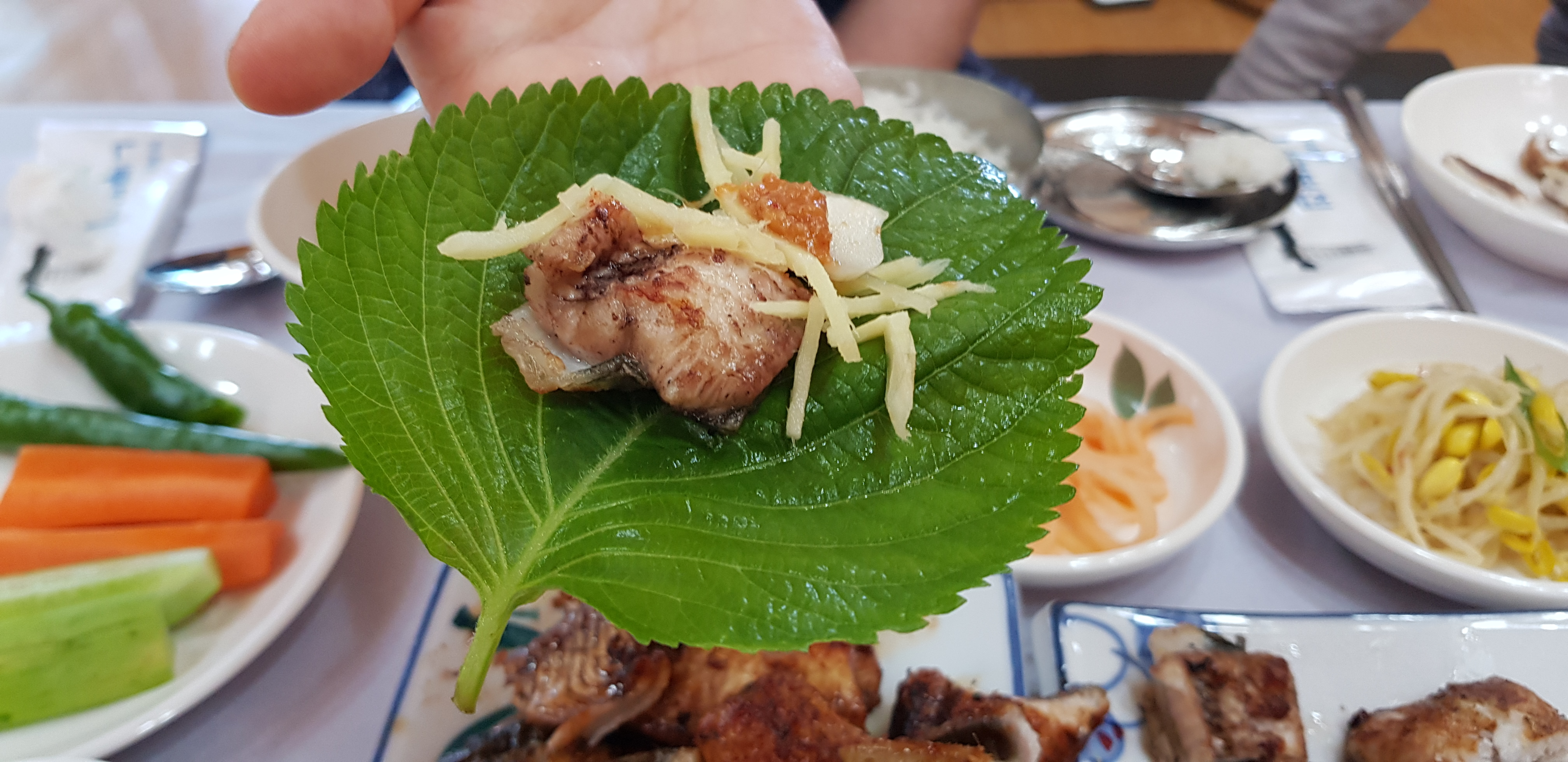 전문가가 알맞게 구워내 두툼한 장어를 씹으니 폭신폭신한 느낌과 함께 입에서 사르르 녹았다. 살이 엄청 부드러워서 구워진 겉부분의 바삭함과 잘 어울렸다. 장어는 기름진 음식이기 떄문에 느끼함을 잡아주기 위해 깻입에 생강을 곁들여서 먹으면 더 맛있다.