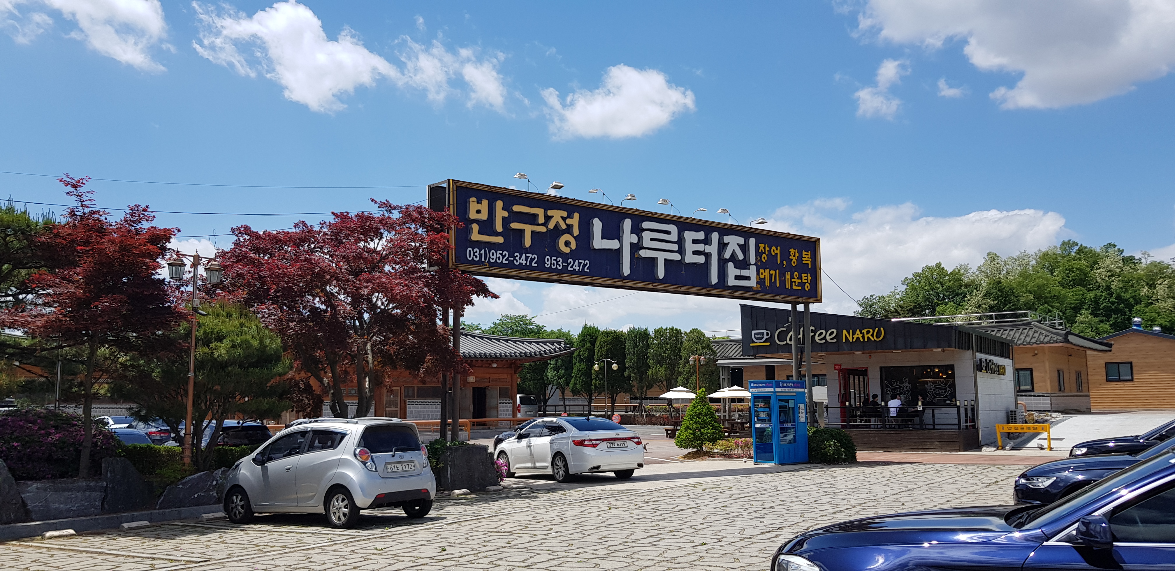 제법 많은 차들이 주차되어 있었음에도 불구하고 워낙 주차장이 넓어 여유롭게 주차할 수 있었다. 한옥 느낌으로 지어진 음식점 건물이 족히 수 백명은 수용할 수 있는 규모로 이 집의 명성을 짐작하게 해 준다.