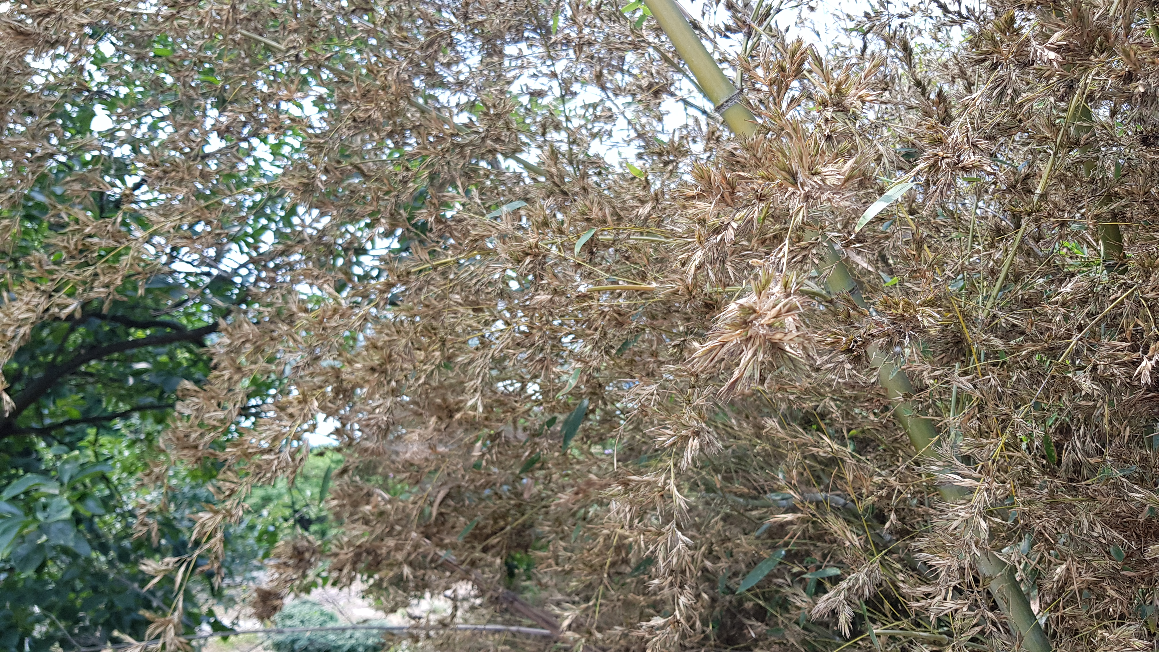 신비의 꽃이라고 불린다고까지 하니 어떻게 생겼는지 기대가 되었다. 하지만 직접 본 대나무 꽃은 익은 벼가 노랗게 고개를 숙이고 있는 것과 같이 특별히 아름다운 모습을 보여 주지는 못했으며 오히려 지저분해 보이기까지 했다.