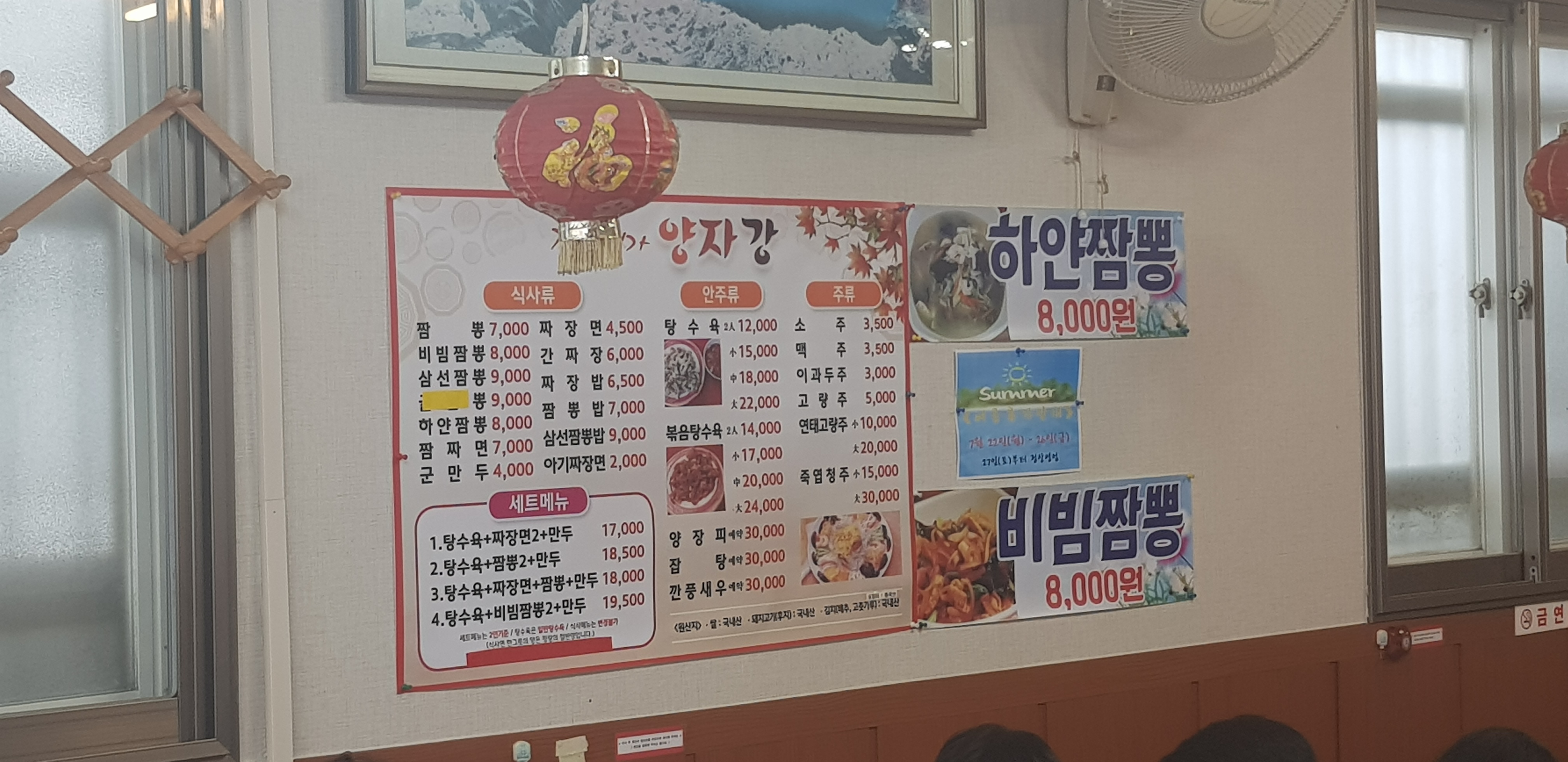 요리관련 방송이 최근 많이 생겨남에 따라 전국의 웬만큼 이름있는 음식점들은 대부분 방송을 타고 있는 실정이라 이곳 양자강도 예외일 순 없었다. 비빔짬뽕의 명인에 등극한 사장님 사진이 들어있는 현수막이 음식점 앞에 걸려있다.