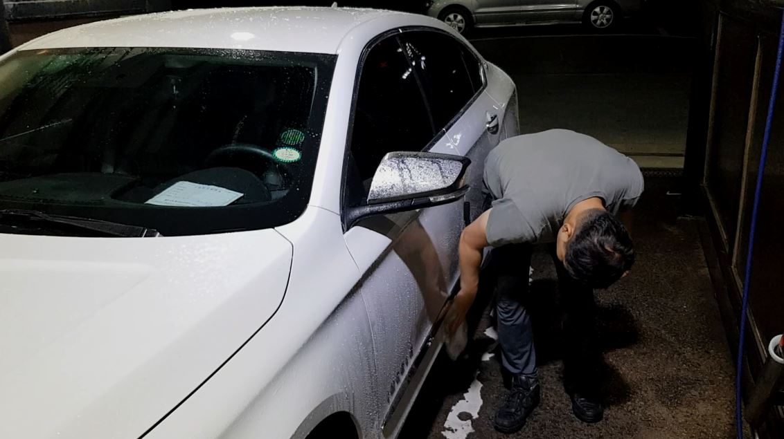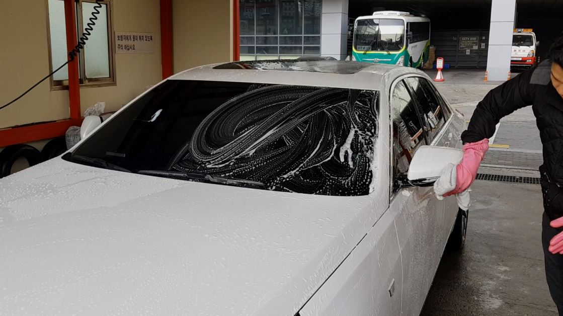 다음은 세차의 편리성입니다. 테프론 코팅을 입히지않은 경우 물로만 세차를 하면 차 표면에 묻은 먼지가 잘 닦이지 않아 샴푸를 사용할 수 밖에 없는데요.